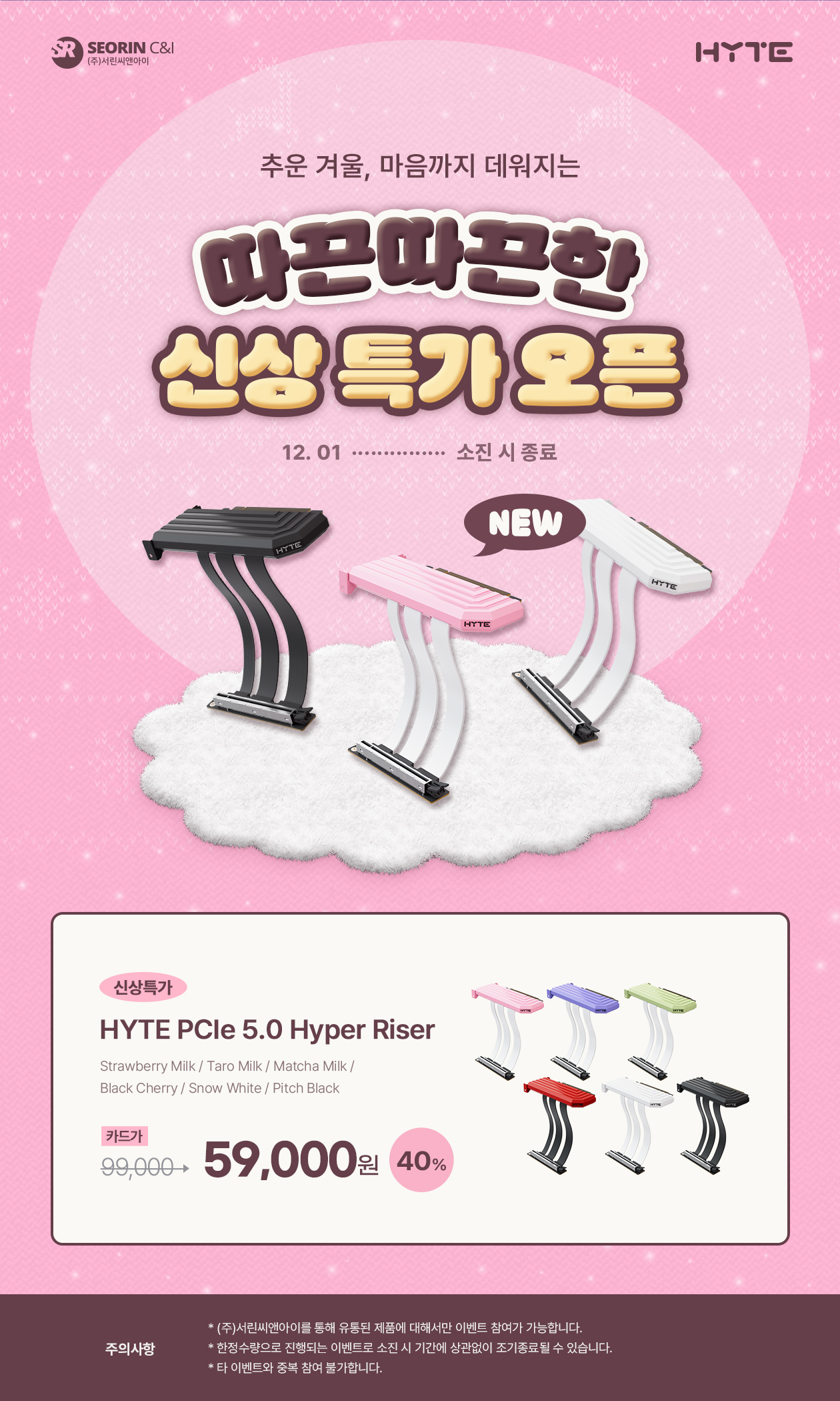 HYTE PCIe 5.0 하이퍼 라이저 케이블 (스트로베리 밀크)