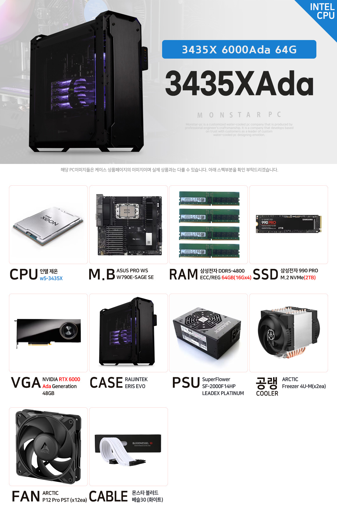 몬스타PC 인텔 제온+RTX 6000 Ada 딥러닝 워크스테이션 서버PC AIR SYSTEM (공랭)