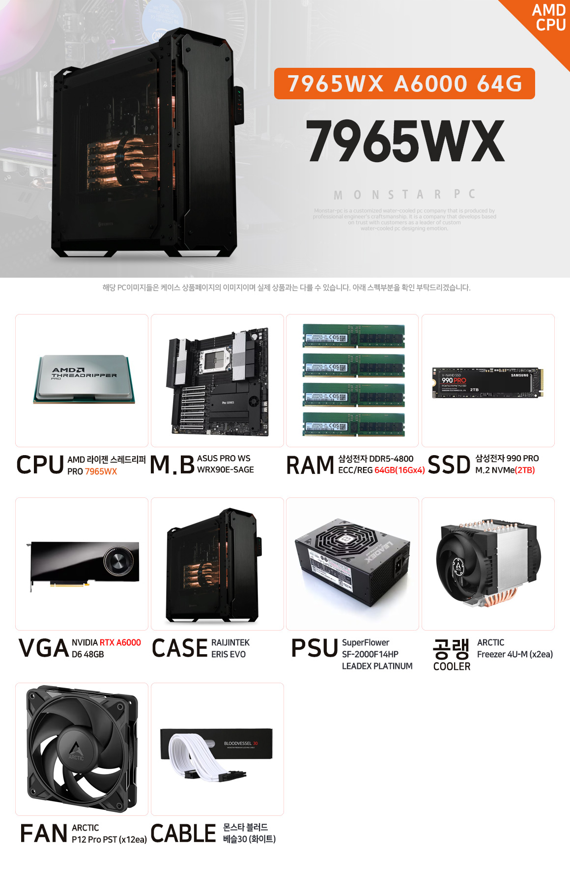몬스타PC AMD 제온+RTX A6000 딥러닝 워크스테이션 서버PC AIR SYSTEM (공랭)