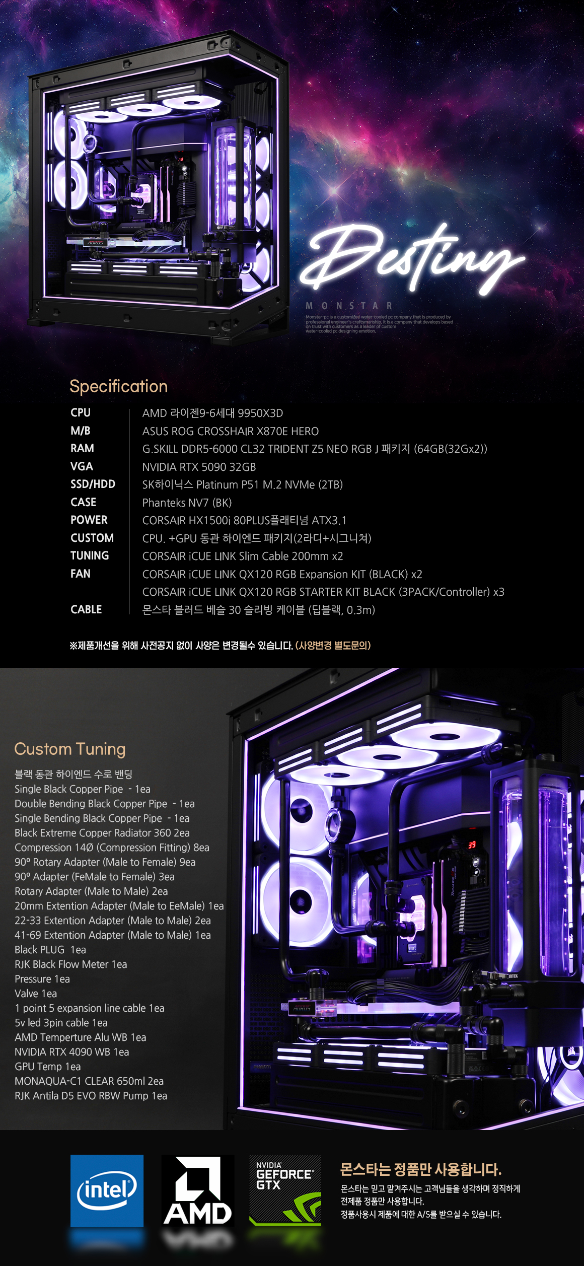 몬스타 가츠 AMD 9950X3D RTX5090 64G 커스텀수냉 데스티니