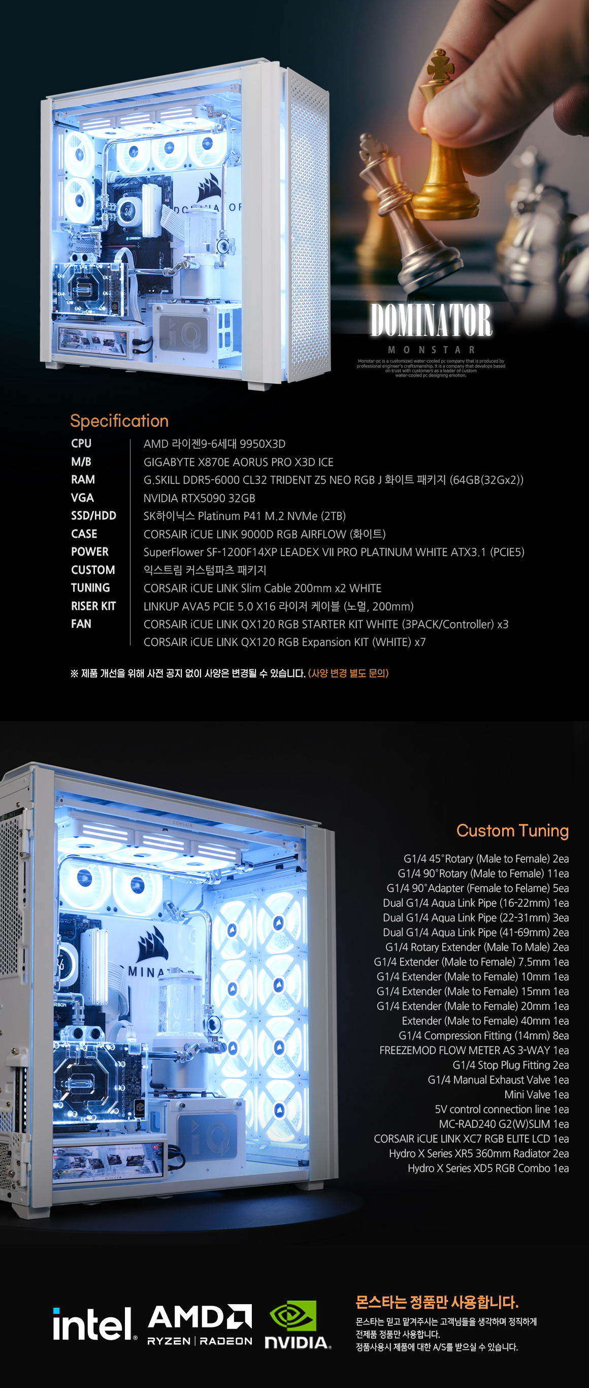 몬스타PC AMD 9950X3D RTX5090 64G 고사양 커스텀수냉 컴퓨터 도미네이터