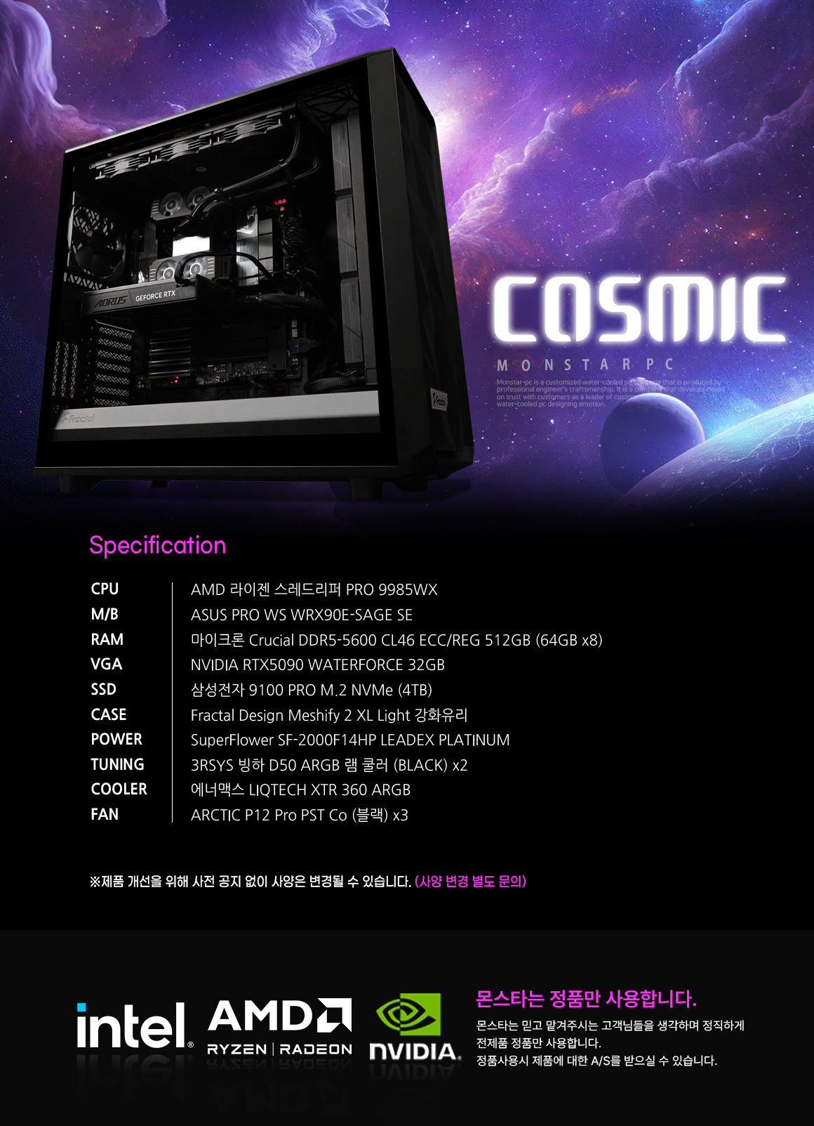 몬스타 가츠 PC 서버 컴퓨터 스레드리퍼 9985WX RTX5090 하이엔드 고성능 코스믹