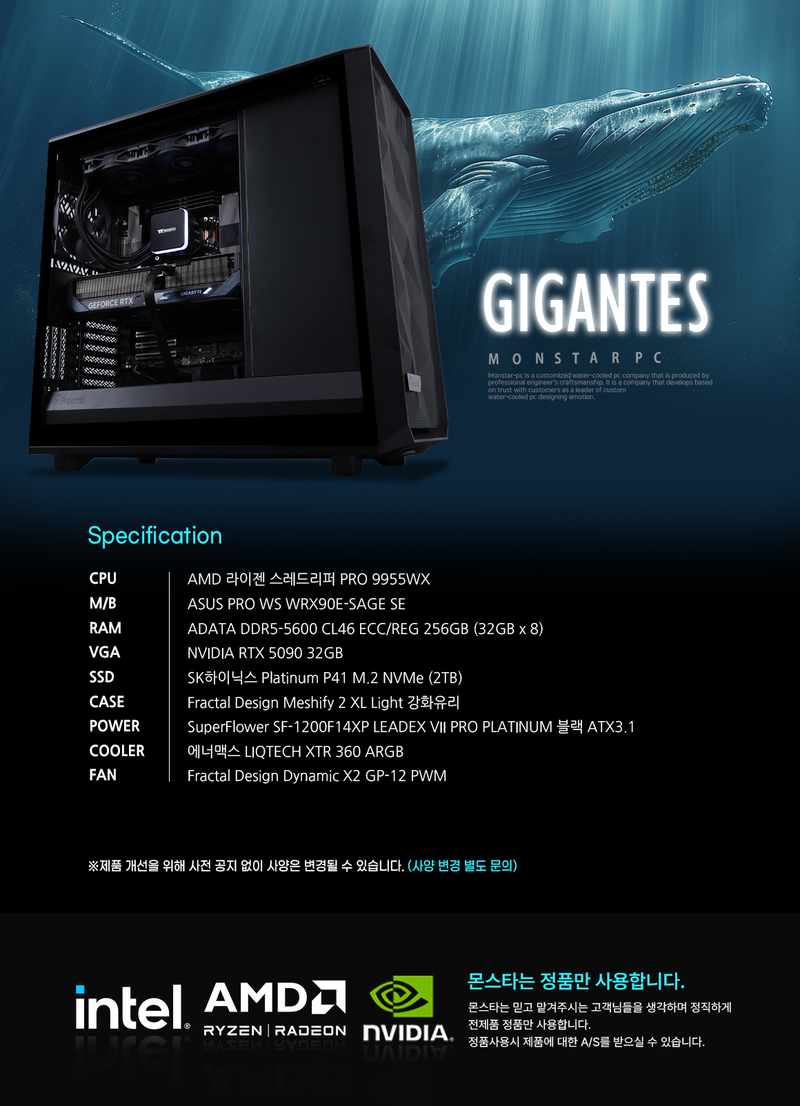 몬스타 가츠 PC 서버용 하이엔드 컴퓨터 딥러닝 스레드리퍼 9955WX RTX5090 기간테스