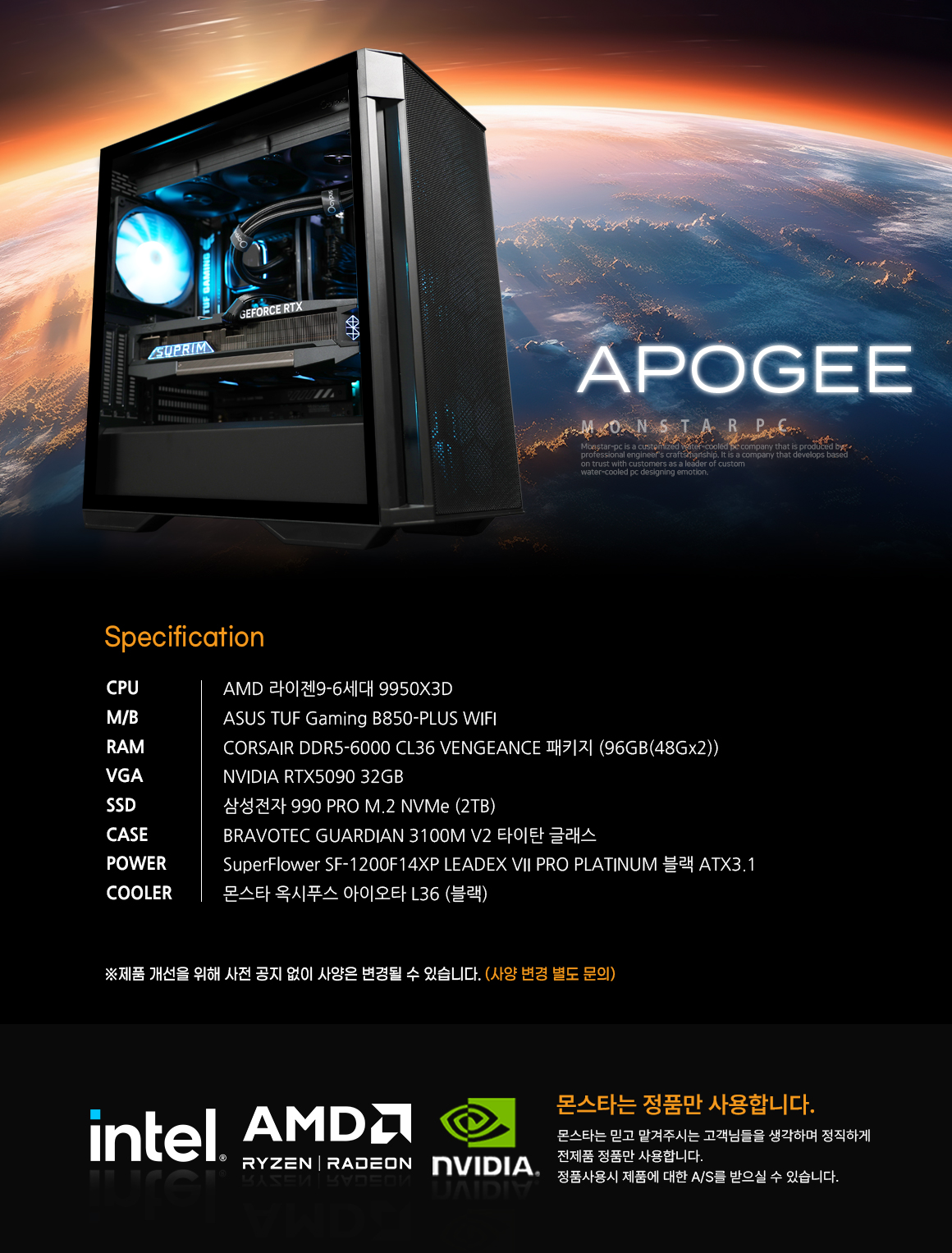 몬스타 가츠 PC 서버 하이엔드 워크스테이션 딥러닝 9950X3D RTX5090 96GB 어포지