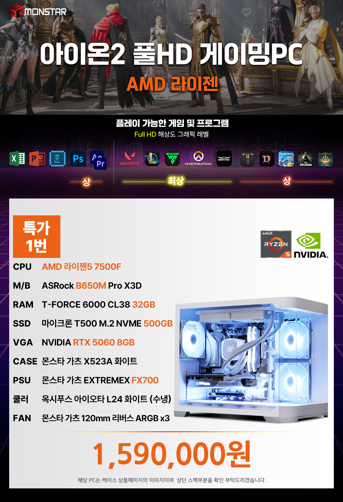 몬스타 7500F RTX5060 1번 아이온2 풀HD 게이밍PC - 즉시출고 이벤트