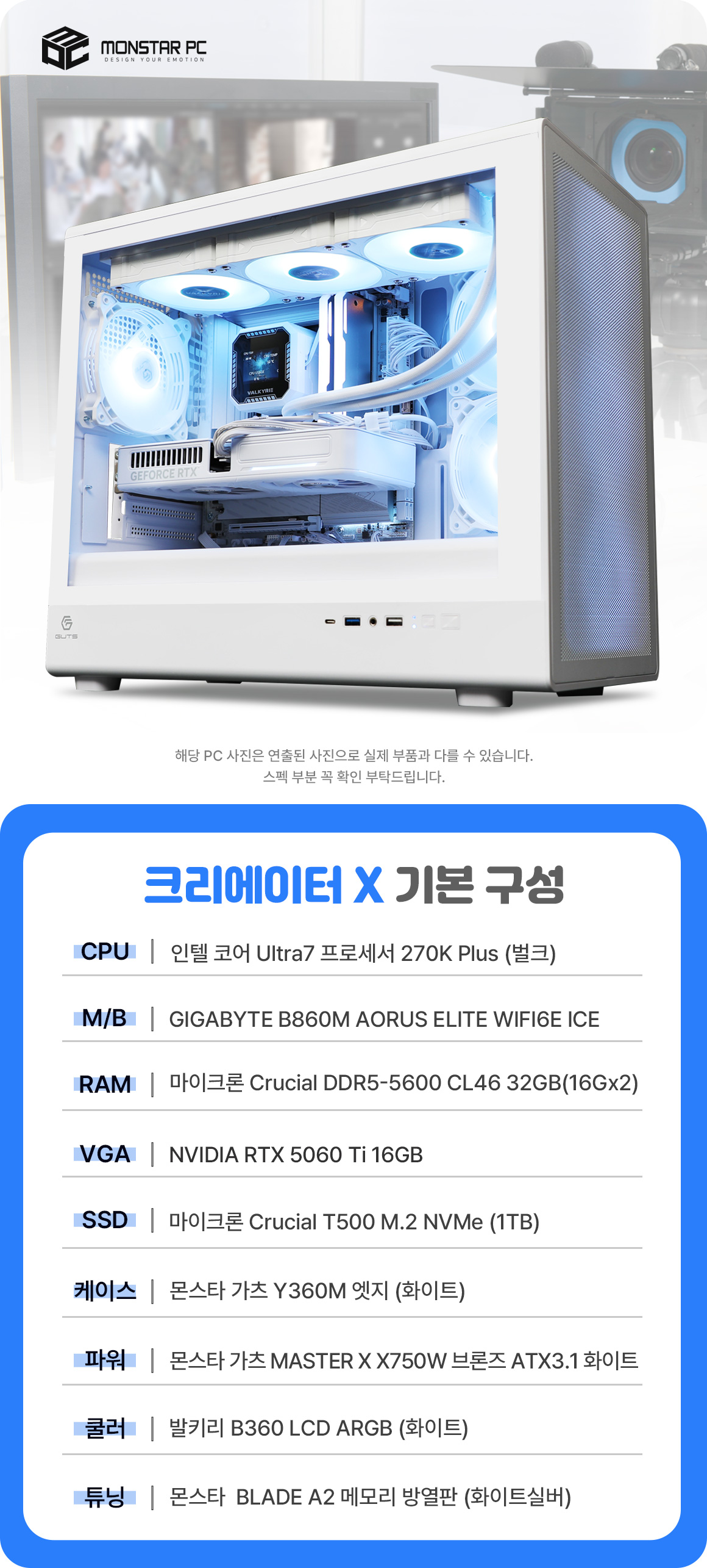몬스타 PC 인텔 코어 울트라7 프로세서 270K Plus RTX 5060 Ti 32G 영상편집 크리에이터X