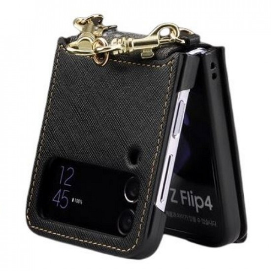 베르노아 갤럭시Z 플립4 핸드메이드 천연가죽 케이스 (블랙 사피아노)