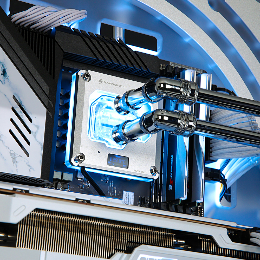 CPU 워터블럭으로 하이엔드 CPU의 한계까지 도달하는 극한의 오버클럭킹을 가능하게 하며, 뛰어난 냉각 효과가 특징이다. FLOW INDICATOR로 인해 냉각수 순환을 직관적으로 관찰이 가능하다. 또한, 최대 4500RPM까지 도달하는 성능을 가진 17W급 수랭 펌프는 간단한 조작과 성능정보를 모니터링할 수 있는 LCD가 탑재되어 있다.