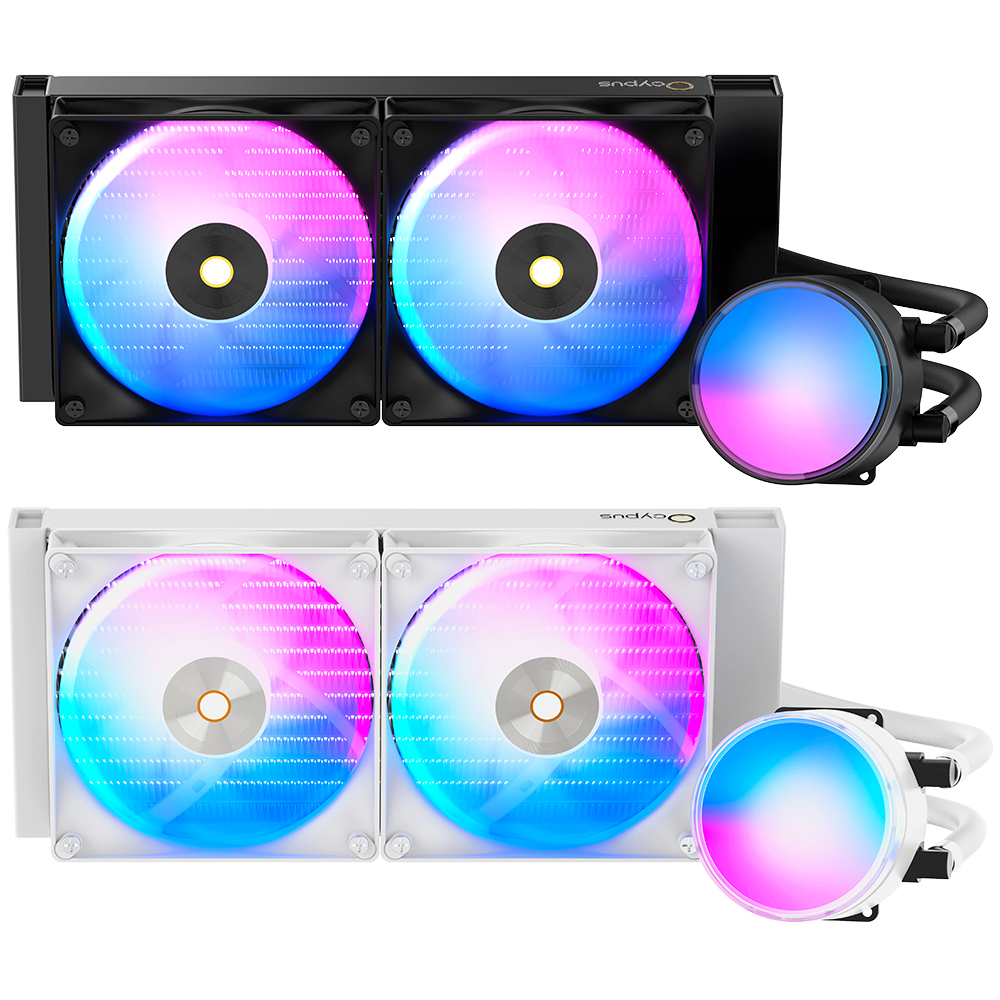 옥시푸스 Delta L24는 블랙과 화이트 두 가지 색상으로 출시되어 사용자의 취향에 맞는 선택이 가능하다. 라디에이터의 두께는 27mm로, 대부분의 PC 케이스에 무리 없이 설치할 수 있는 크기다.