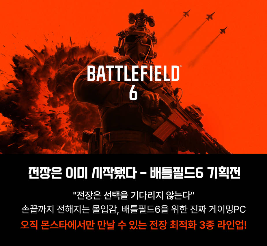 몬스타기어 관계자는 “‘배틀필드 6’는 현존 최고 수준의 그래픽을 자랑하는 만큼, PC의 성능이 전장의 승패를 좌우할 수 있다”라며, “이번 기획전은 몬스타기어의 최적화 노하우가 집약된 라인업으로, 어떤 순간에도 망설임 없이 전장에 뛰어들 수 있도록 최고의 환경을 제공할 것”이라고 밝혔다.