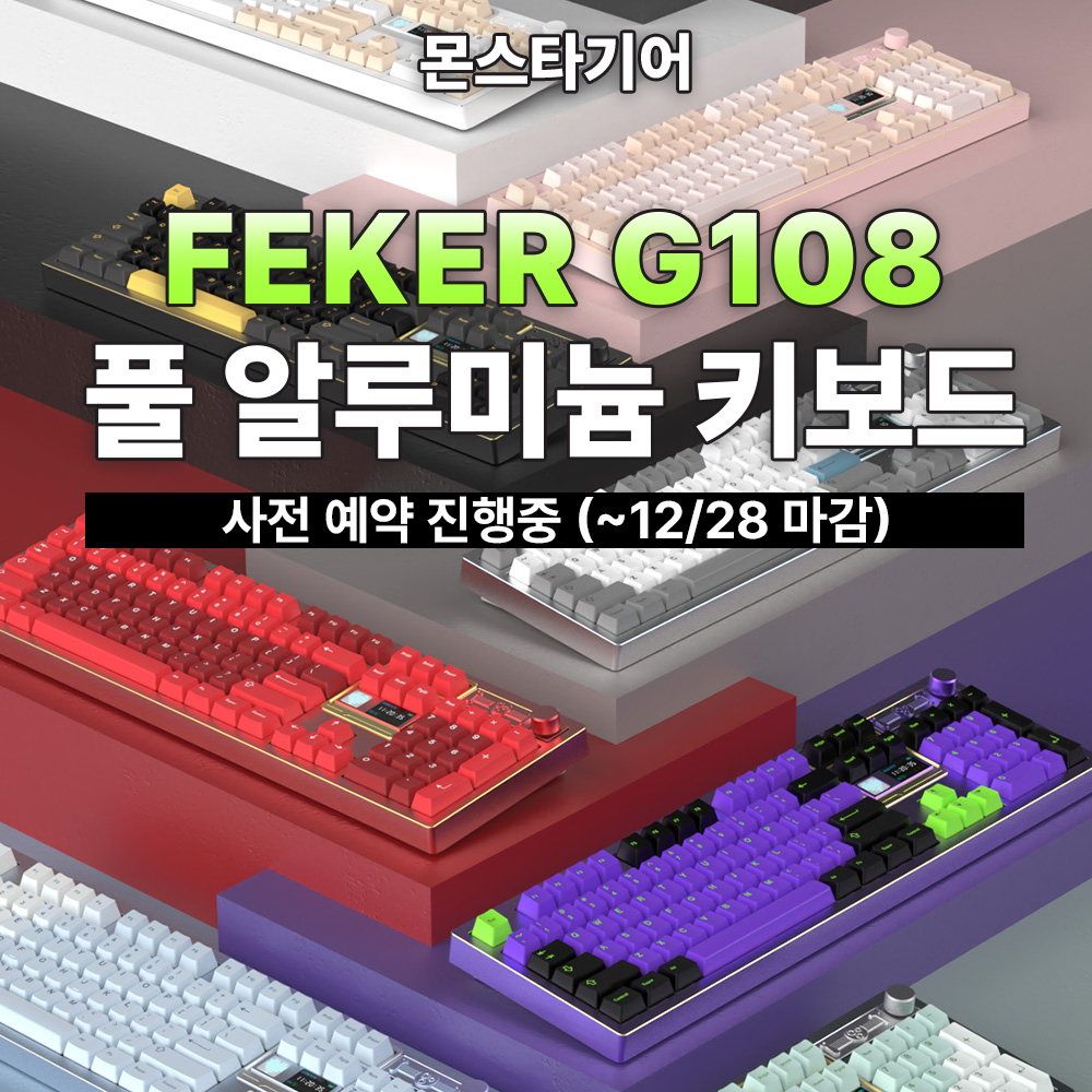 커스텀 키보드와 혁신적인 입력기기인 몬스타덱을 통해 시장을 선도하고 있으며, 몬스타기어 브랜드로 게이밍 기어, 커스텀 수랭 쿨러, AI 딥러닝 등 하이엔드 PC 제조에 특화된 기업 몬스타주식회사가 하이엔드 기술력을 집약한 풀 알루미늄 기계식 키보드 ‘FEKER G108’를 오는 12월 28일까지 사전 예약을 진행한다고 밝혔다.