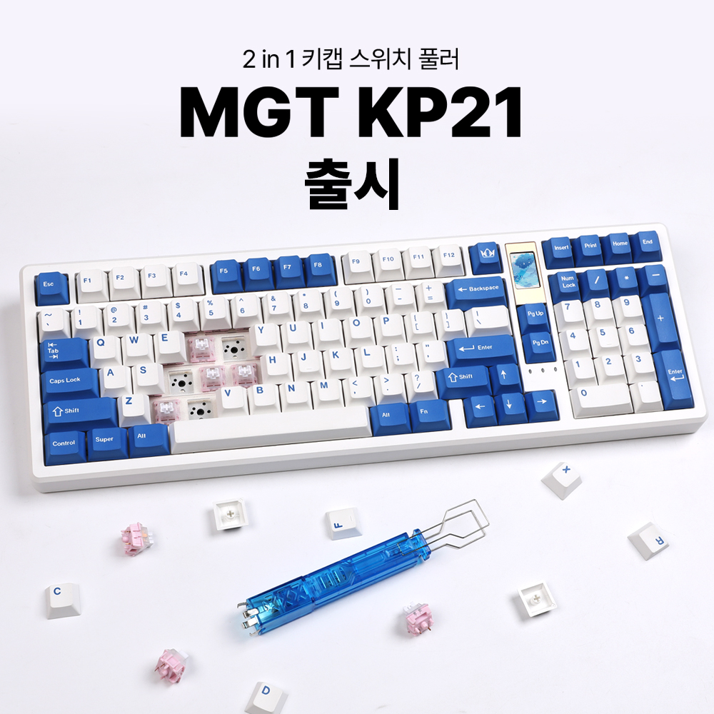 이번에 선보인 ‘MGT KP21’은 키보드 커스텀이나 청소 시 필수적인 키캡 제거와 스위치 교체 기능을 하나의 도구에 담은 올인원 툴이다. 기존의 금속 와이어 형태의 저가형 풀러가 가진 단점인 보관의 불편함과 팁 변형 문제를 획기적으로 개선한 것이 특징이다.