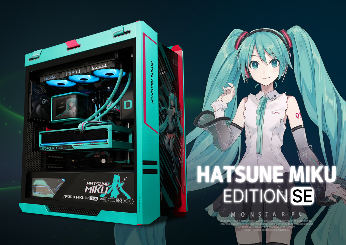 상위 모델인 하츠네 미쿠 에디션은 ASUS ROG와 버추얼 싱어 하츠네 미쿠 콜라보 부품을 풀세트로 구성한 하이엔드급 수랭 게이밍 PC다.
