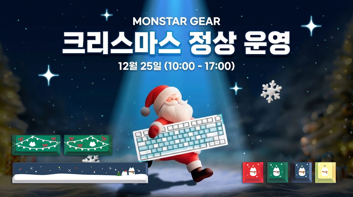 몬스타주식회사 관계자는 “크리스마스 휴일을 맞아 PC와 게이밍 기어에 관심이 많은 고객들이 여유롭게 매장을 둘러보고 제품을 경험할 수 있도록 문을 열기로 했다”며, “매장에 방문하셔서 귀여운 신상 키캡도 직접 확인하시고 즐겁고 유익한 시간을 보내시길 바란다”고 전했다.