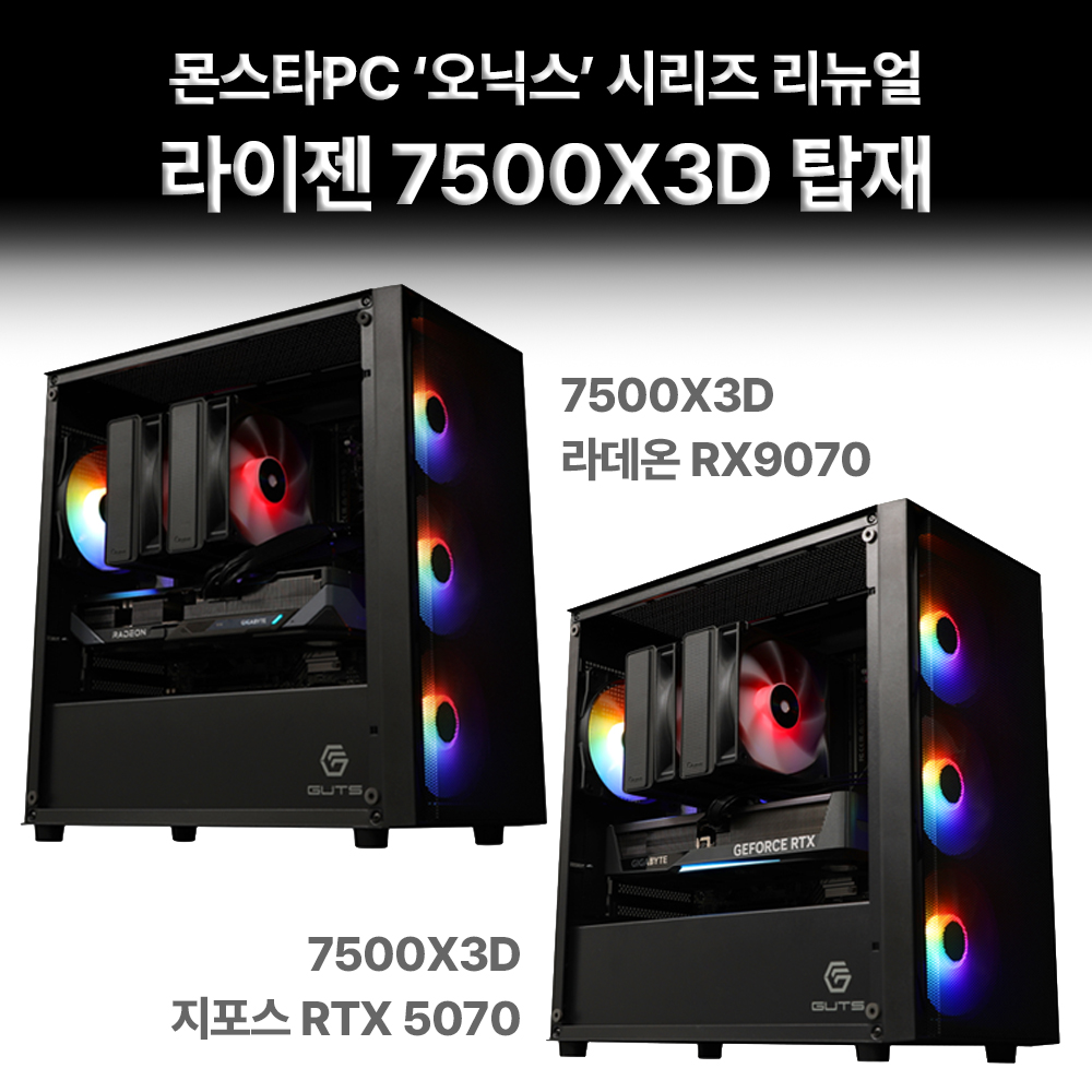 최근 출시된 라이젠 5 7500X3D는 AMD의 3D V-Cache 기술이 적용된 신규 라인업으로, 게이밍 성능에서 뛰어난 효율을 인정받으며 주목받고 있다. 몬스타PC는 이 신형 CPU를 자사의 인기 모델인 ‘오닉스’ 시리즈에 바로 적용해 업그레이드 버전으로 내놓았다.