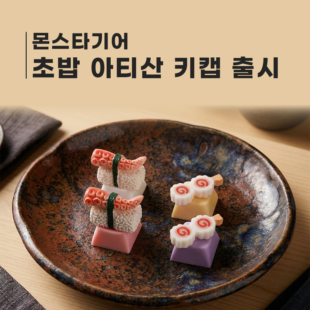 커스텀 키보드와 혁신적인 입력기기인 몬스타덱을 통해 시장을 선도하고 있으며, 게이밍 기어, 커스텀 수냉 쿨러, 인공지능 딥러닝 등 하이엔드 PC 제조에 특화된 기업 몬스타주식회사에서 이번에는 음식 테마를 투영한 3D 아티산 키캡인 ‘몬스타기어 초밥 아티산 키캡’을 선보였다.