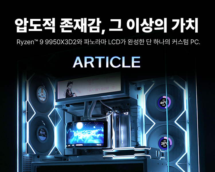 아티클의 핵심은 AMD가 공개한 최신 프로세서 라이젠 9950X3D2 Dual Edition이다. 3D V-Cache 기술을 한 단계 더 발전시킨 이 프로세서는 공개 직후 곧바로 시스템에 탑재되어 출시됐다는 점에서 주목된다. 메인보드는 GIGABYTE X870 AORUS STEALTH ICE, 메모리는 DDR5-6000 CL32 Z5 NEO RGB 64GB(32GB×2), 그래픽카드는 NVIDIA RTX 5090 32GB, 저장장치는 SK하이닉스 Platinum P51 M.2 NVMe (2TB)다. 케이스는 Thermaltake A71 ARGB 화이트, 파워서플라이는 리안리 EDGE 1300 80PLUS 플래티넘 화이트, 수랭 쿨러는 Thermaltake Pacific 360 Turbo ARGB 화이트로 구성됐다. 팬은 리안리 UNI FAN TL Wireless 시리즈로 구성됐으며, 튜닝 요소로 리안리 S 8.8 Universal Screen 화이트가 적용됐다.