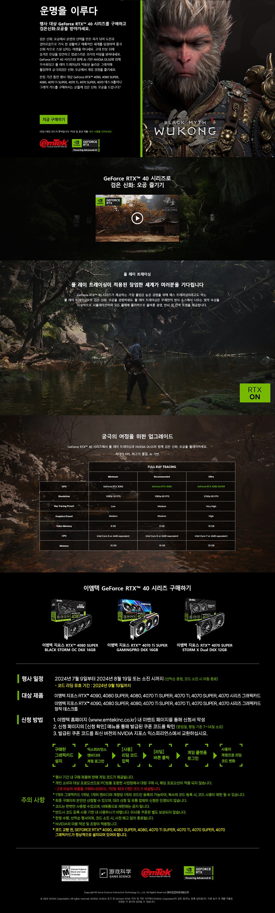 [이엠텍] 지포스 RTX™ 4070 시리즈 이상 구매고객 대상 '검은신화: 오공' 번들 프로모션!