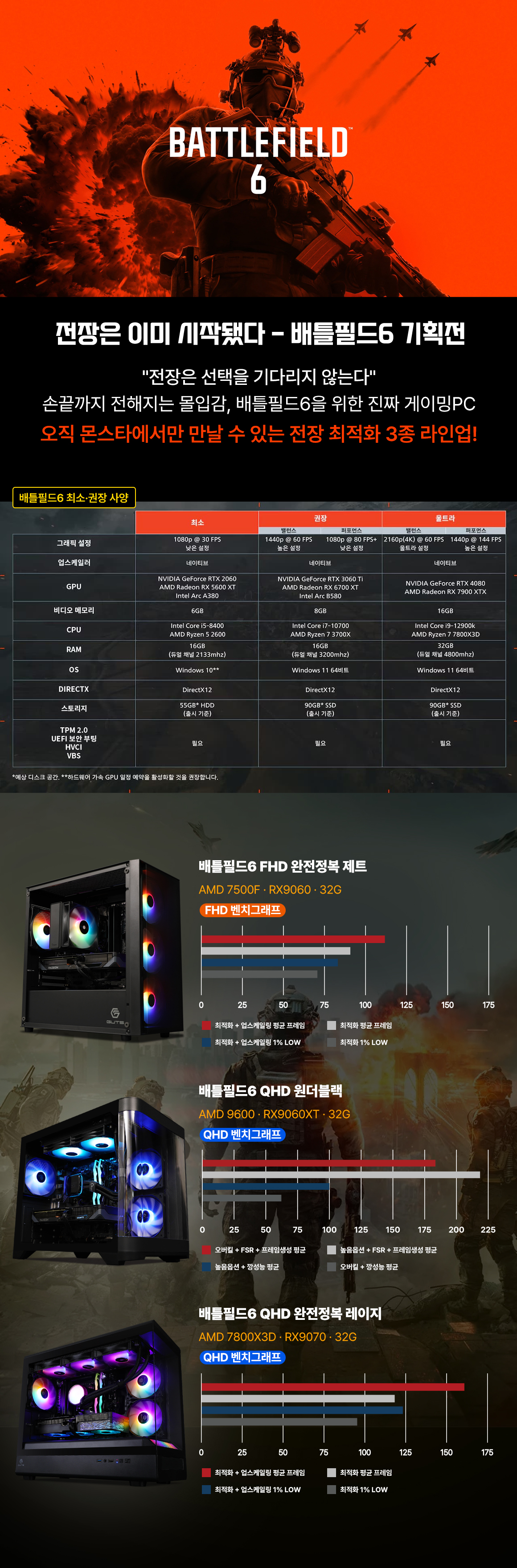 몬스타 PC AMD 9600 RX9060XT 32G 배틀필드6 QHD 게이밍 컴퓨터 원더 블랙