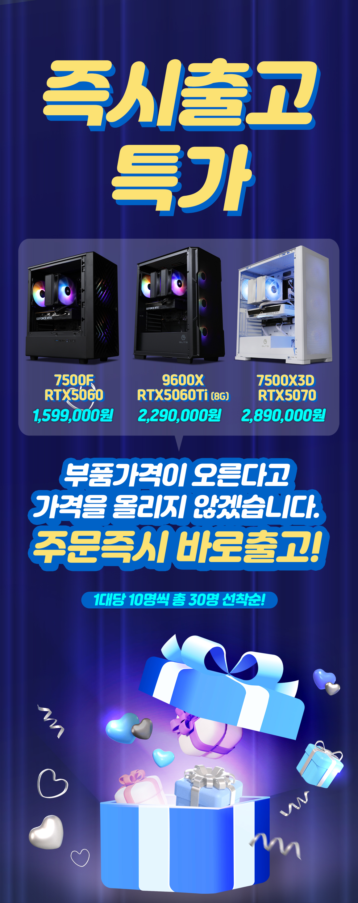 [즉시출고] 몬스타 PC AMD 라이젠5 7500F RTX5060 16G 가성비 게이밍 컴퓨터 루키