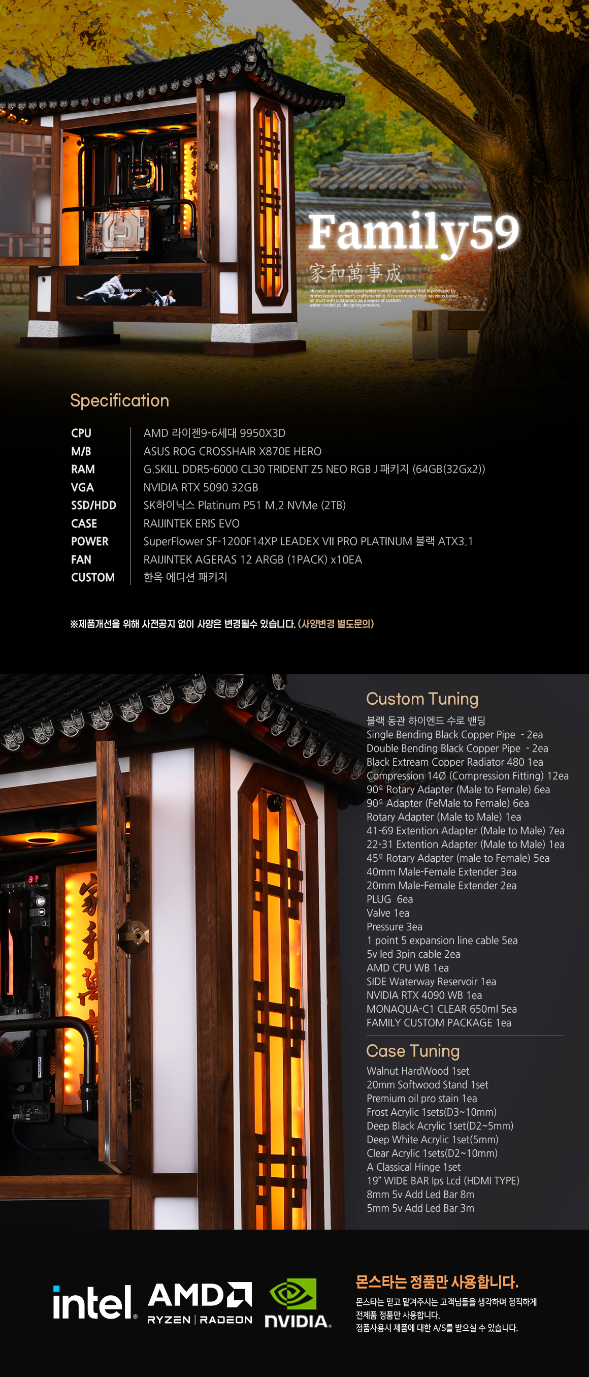 몬스타 PC AMD 9950X3D RTX5090 64G 고사양 커스텀수냉 패밀리59