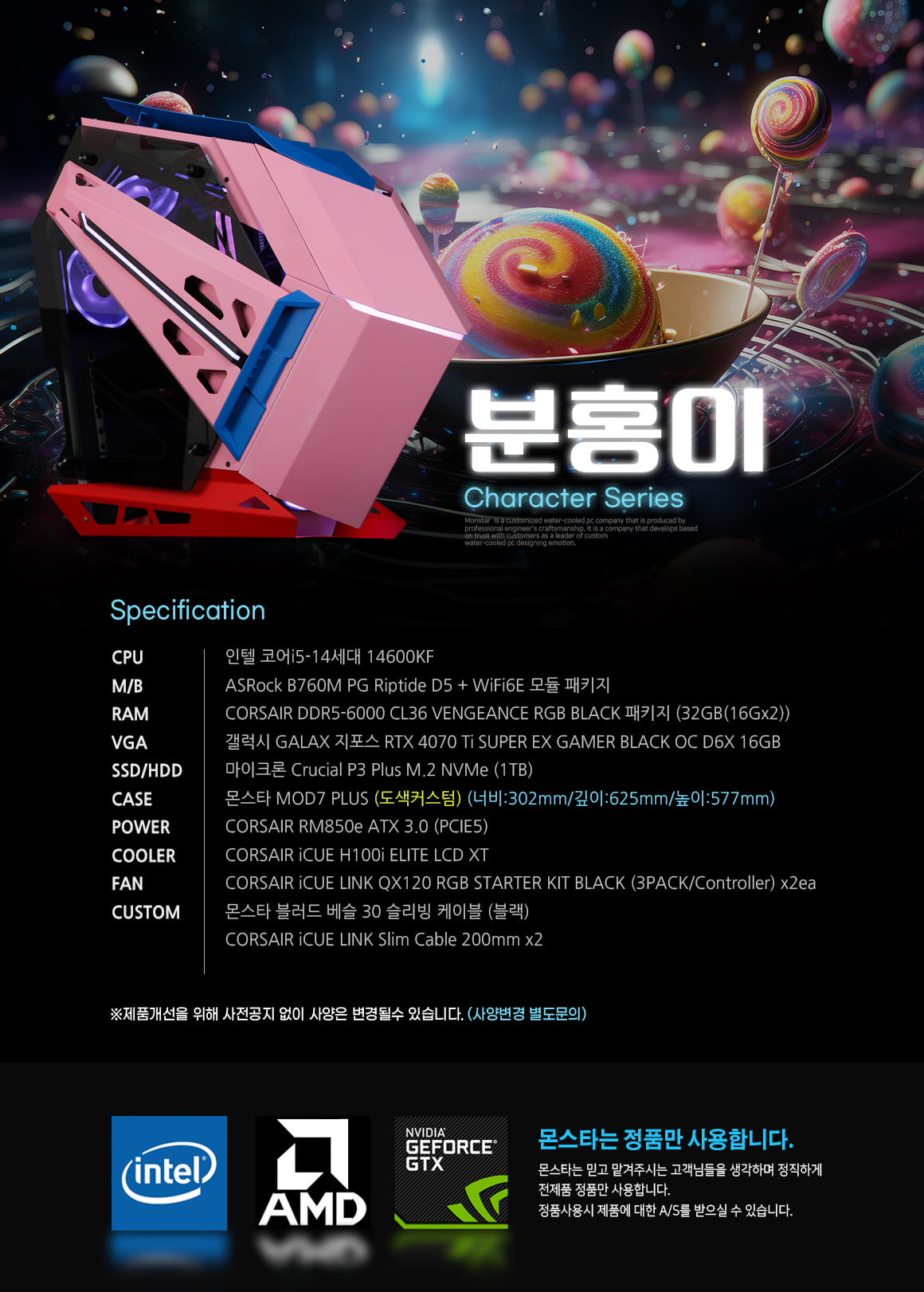 몬스타PC INTEL i5 14600KF RTX4070Ti SUPER 32G 게이밍PC 분홍이