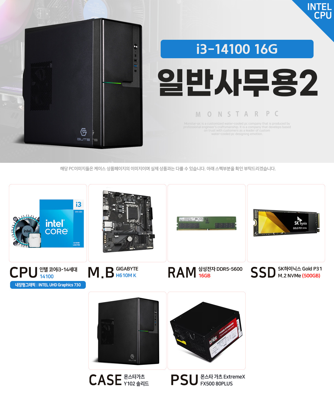 몬스타PC 인텔 내장그래픽PC i3 14100 16G 조립컴퓨터 Y102 일반사무용PC2