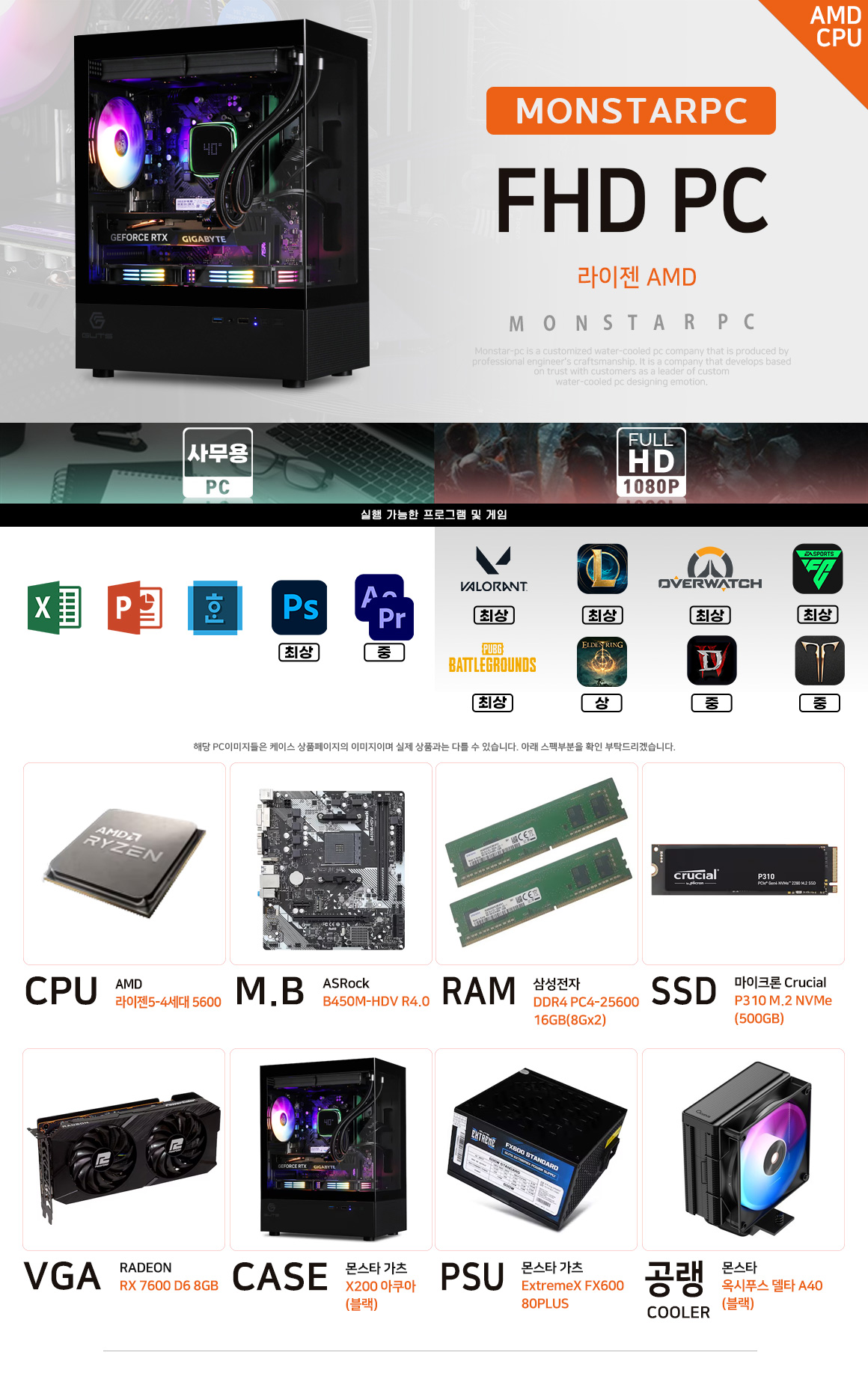 몬스타 가츠 AMD 5600 RX 7600 16G 엘든링 FHD PC