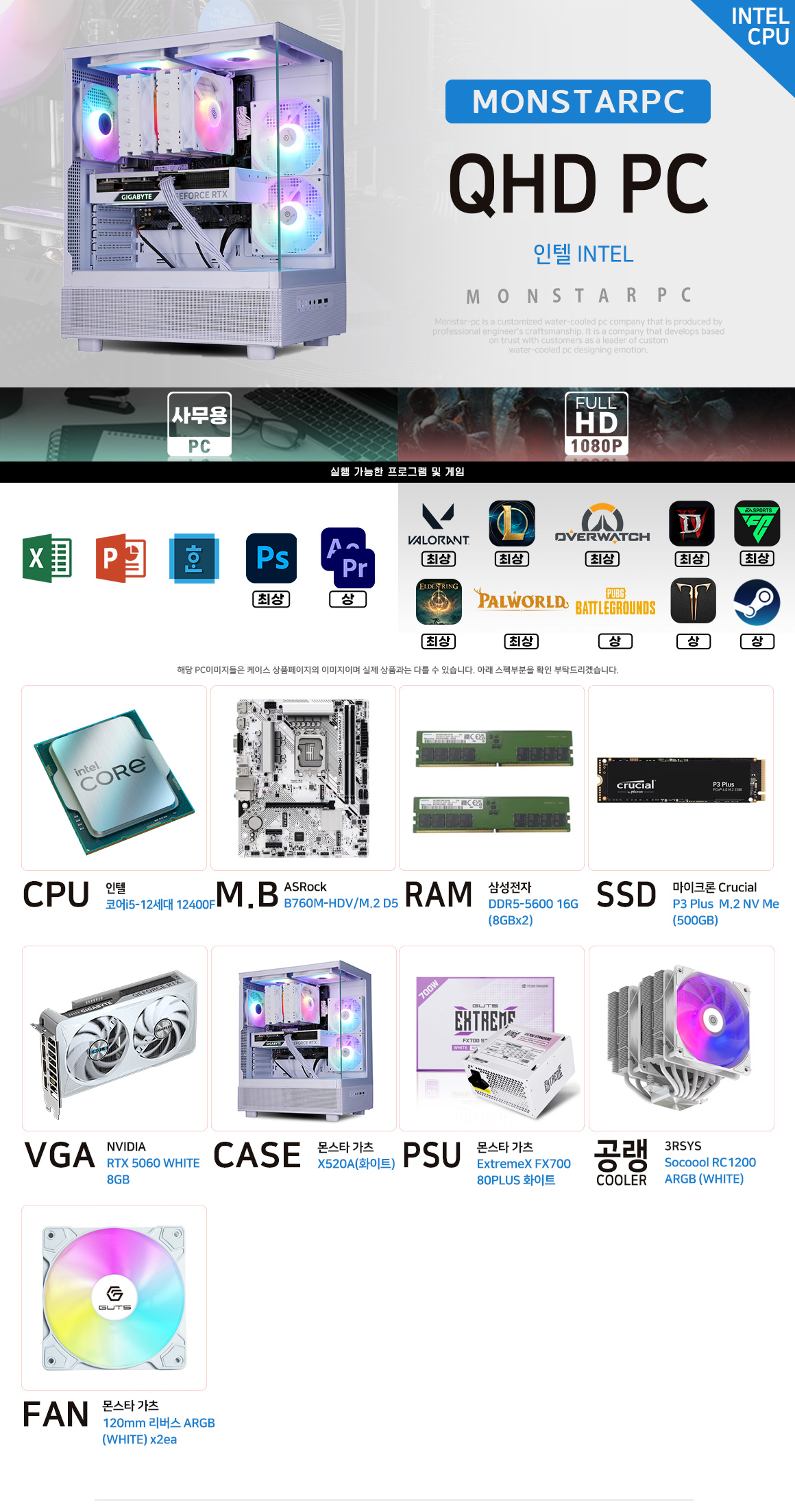 몬스타 가츠 INTEL i5 12400F RTX 5060 16G 엘든링 QHD PC