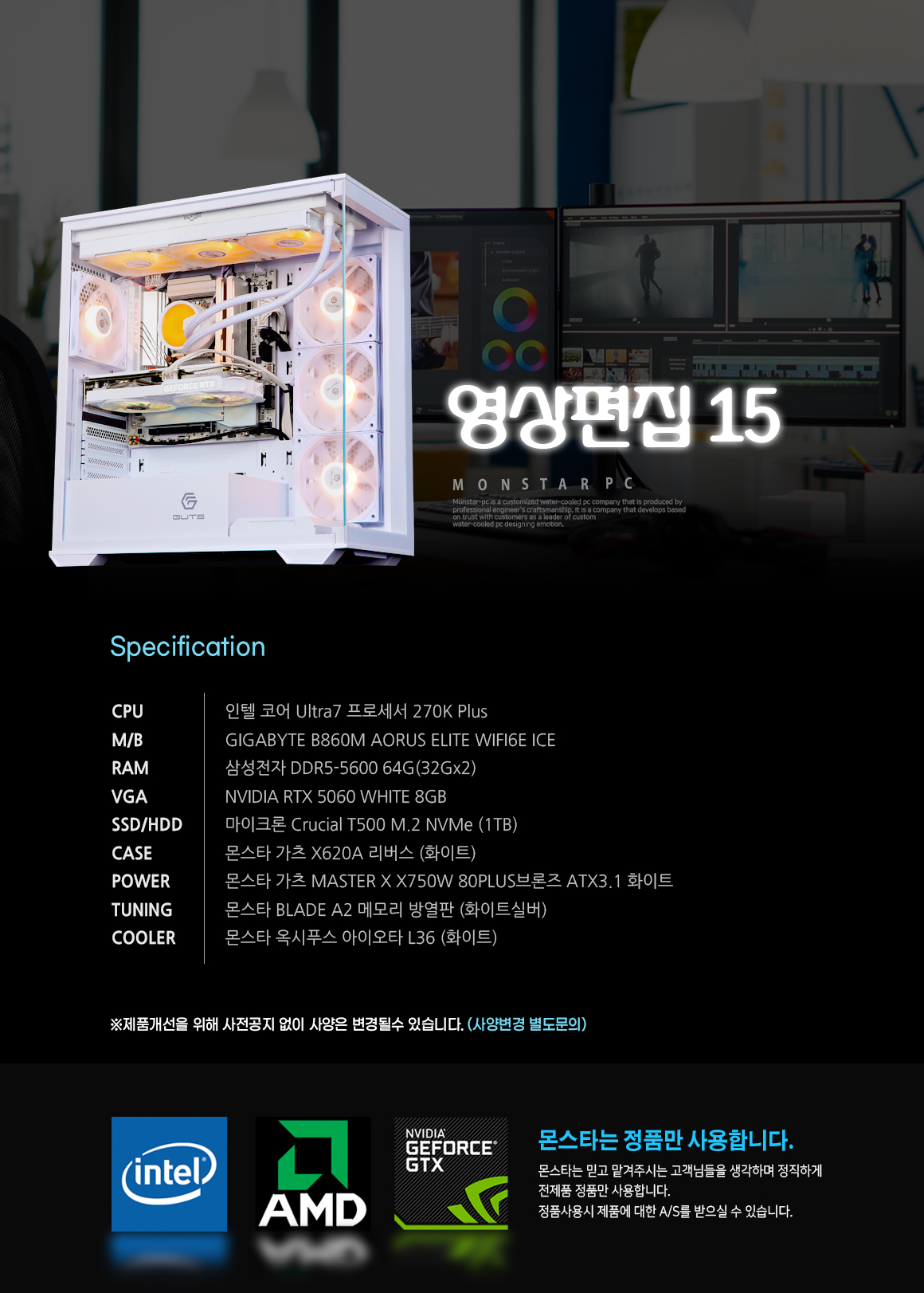 [무이자12개월] 몬스타 가츠 인텔 울트라7 프로세서 270K Plus RTX5060 64G 영상편집15