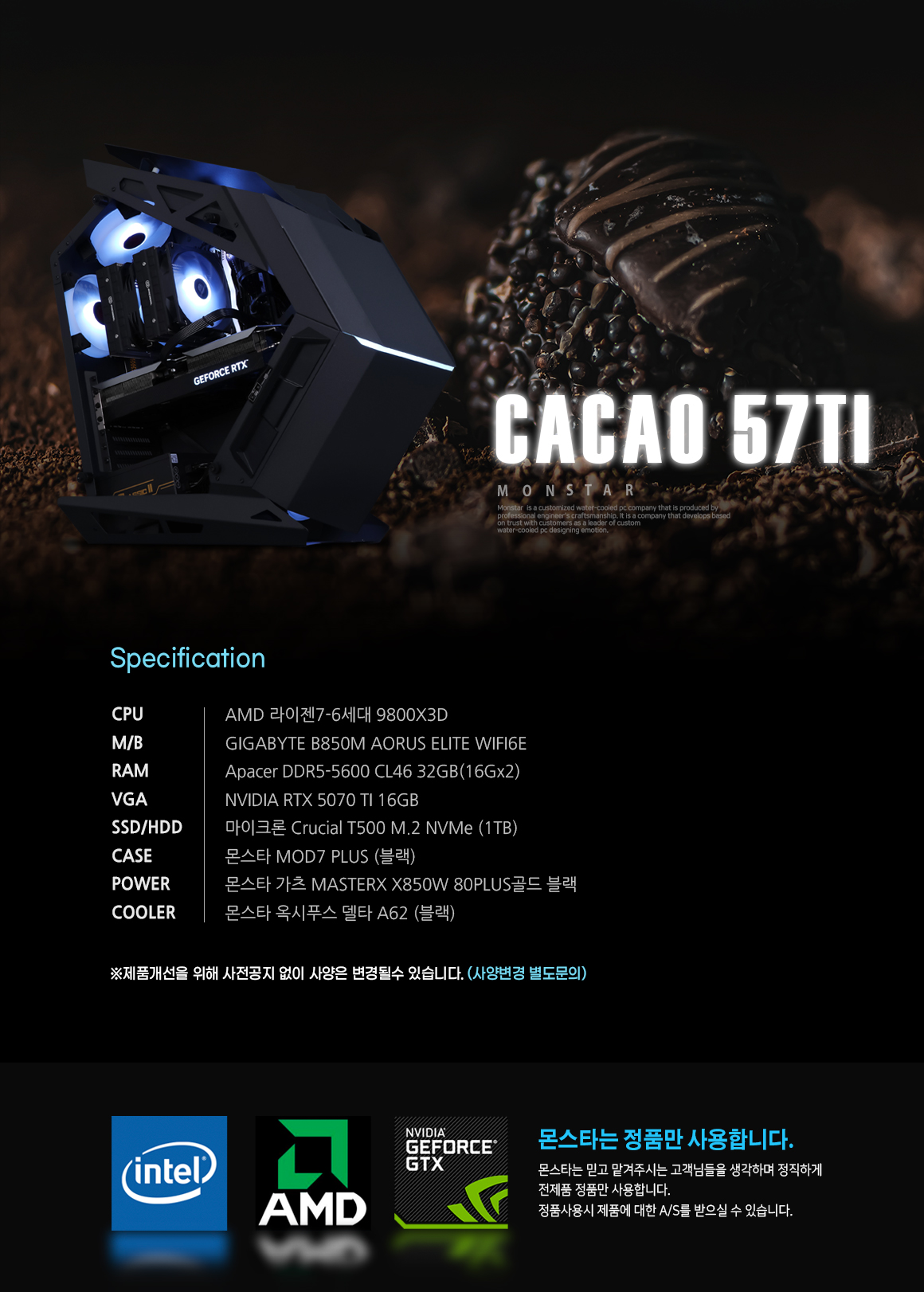 몬스타 가츠 AMD 9800X3D RTX 5070 Ti 32G 게이밍 PC 카카오57Ti