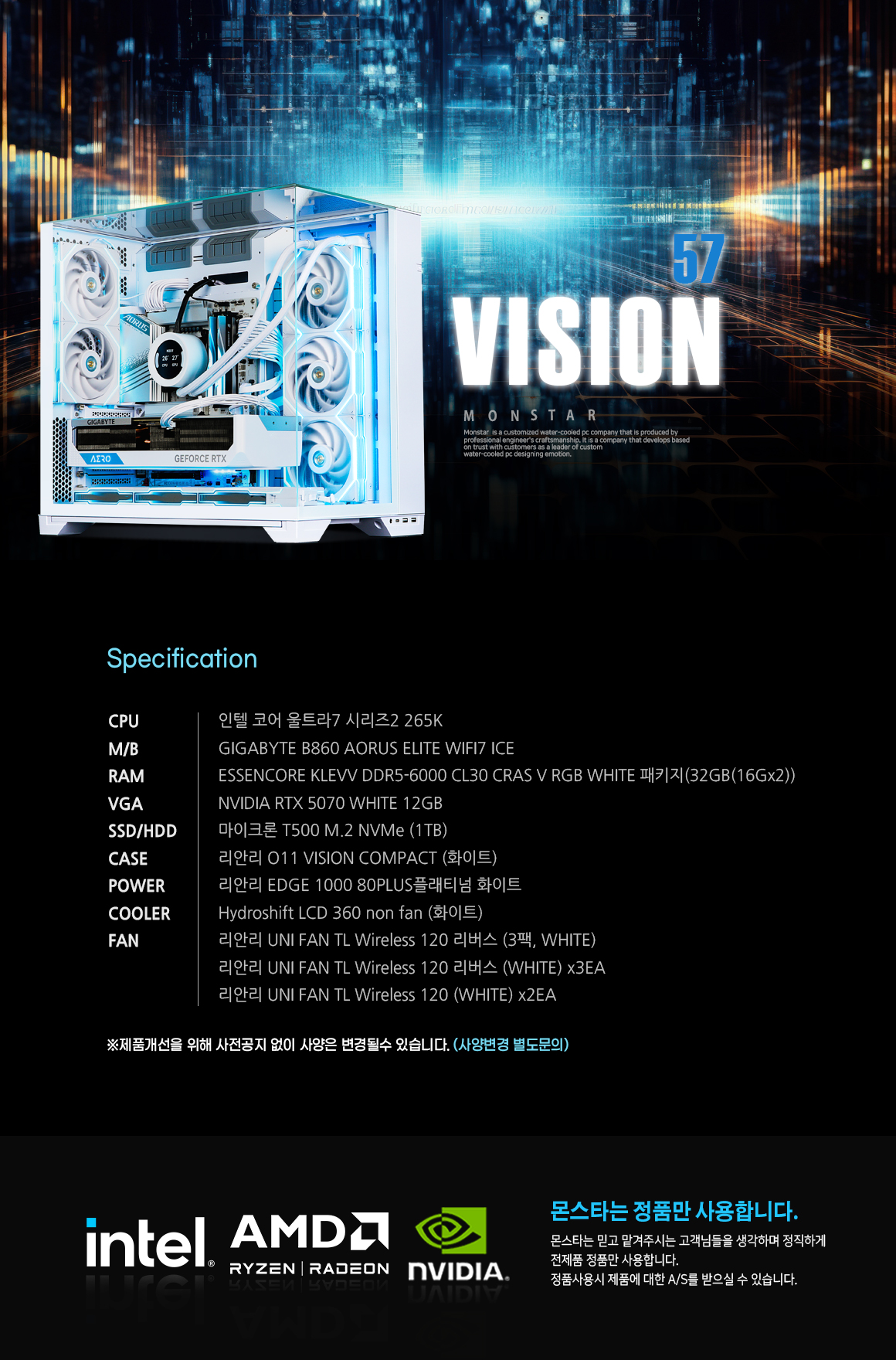 몬스타 가츠 인텔 울트라7 265K RTX 5070 32G 게이밍 PC 비전57