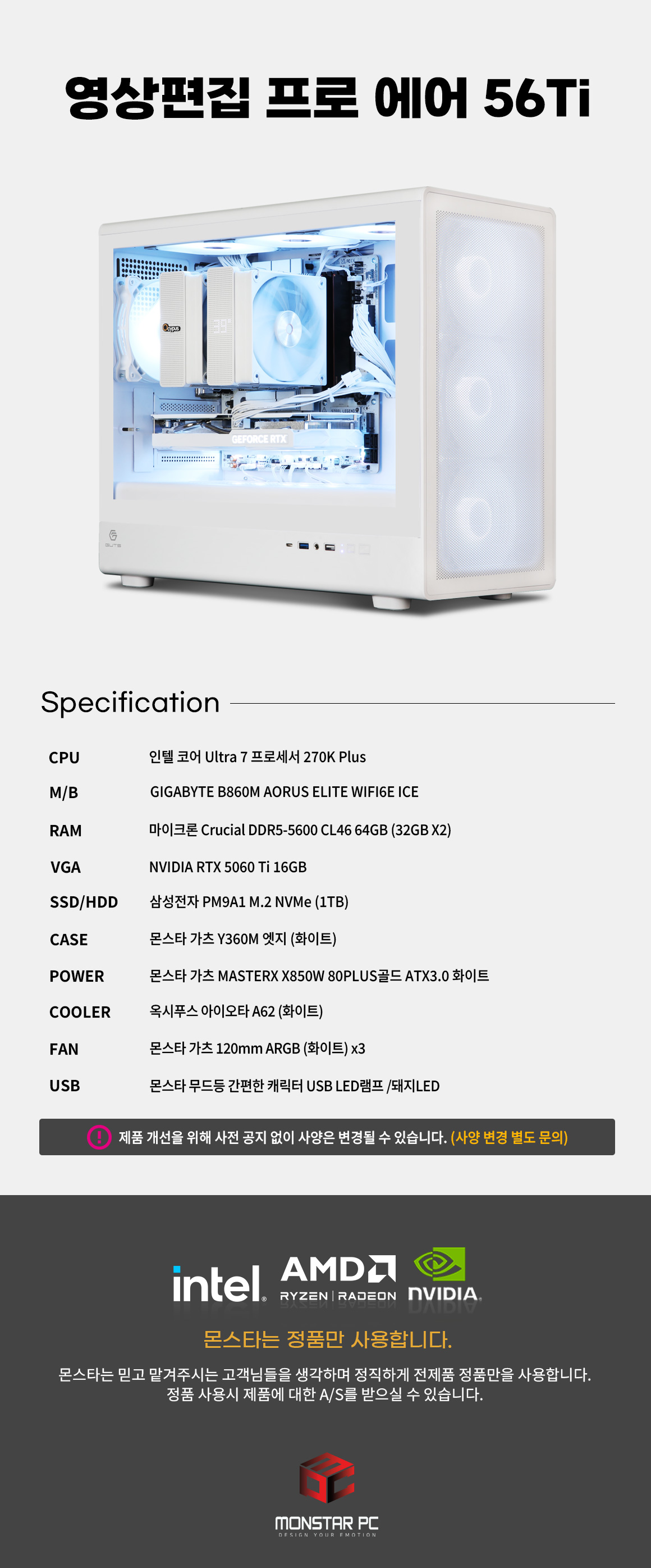 몬스타 가츠 인텔 울트라7 프로세서 270K Plus RTX5060Ti 64G 영상편집 프로 에어 56Ti