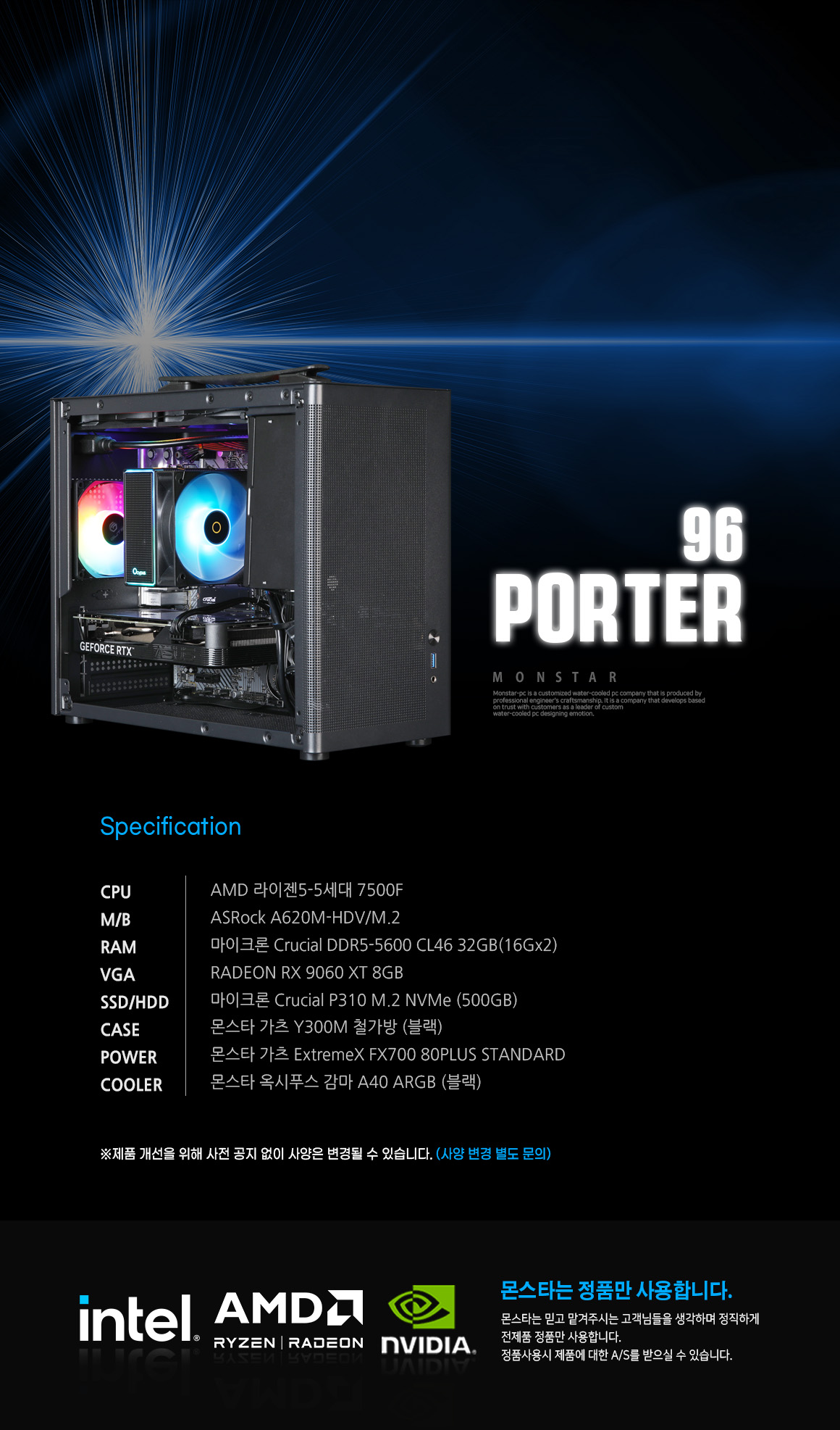 몬스타 가츠 AMD 7500F RX9060XT(8GB) 32G 조립 게이밍 컴퓨터 포터96