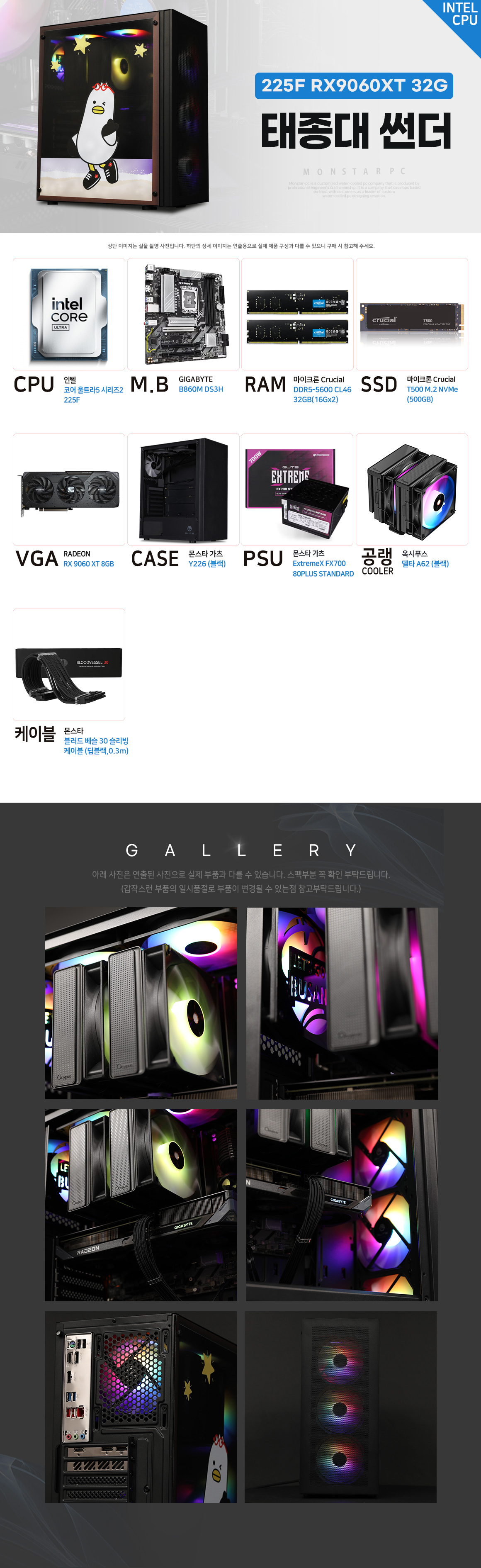 몬스타 가츠 울트라5 225F RX9060XT 32G 게이밍 컴퓨터 태종대 썬더-즉시출고 이벤트 (선착순1대)