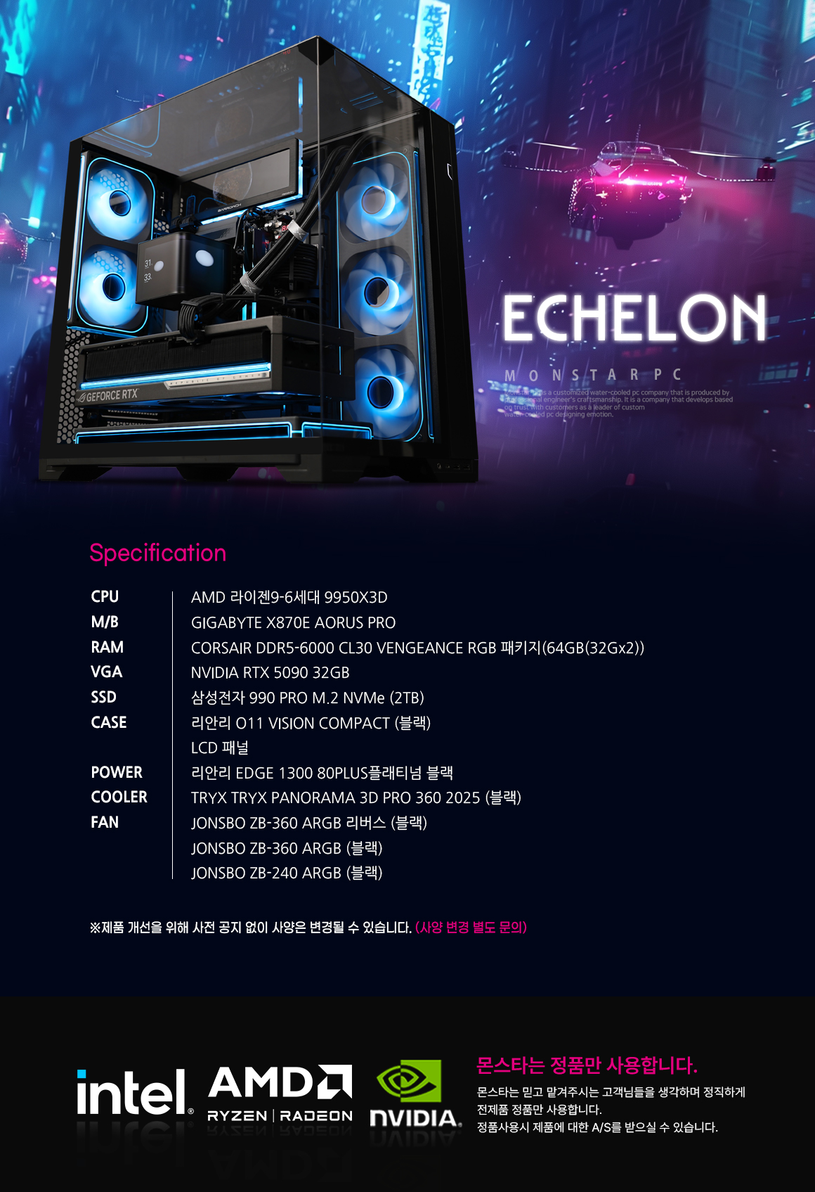 몬스타 가츠 PC AMD 라이젠9 9950X3D RTX 5090 64G 고사양 컴퓨터 에셜론