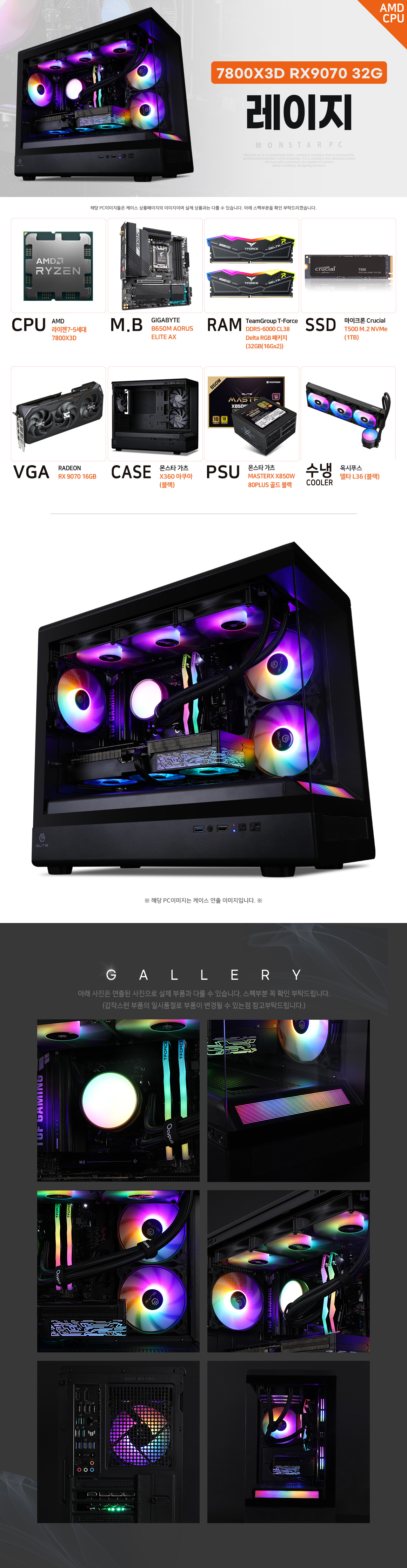 몬스타PC 라이젠7 7800X3D RX9070 32G 게이밍 컴퓨터 배틀필드6 QHD 완전정복 레이지