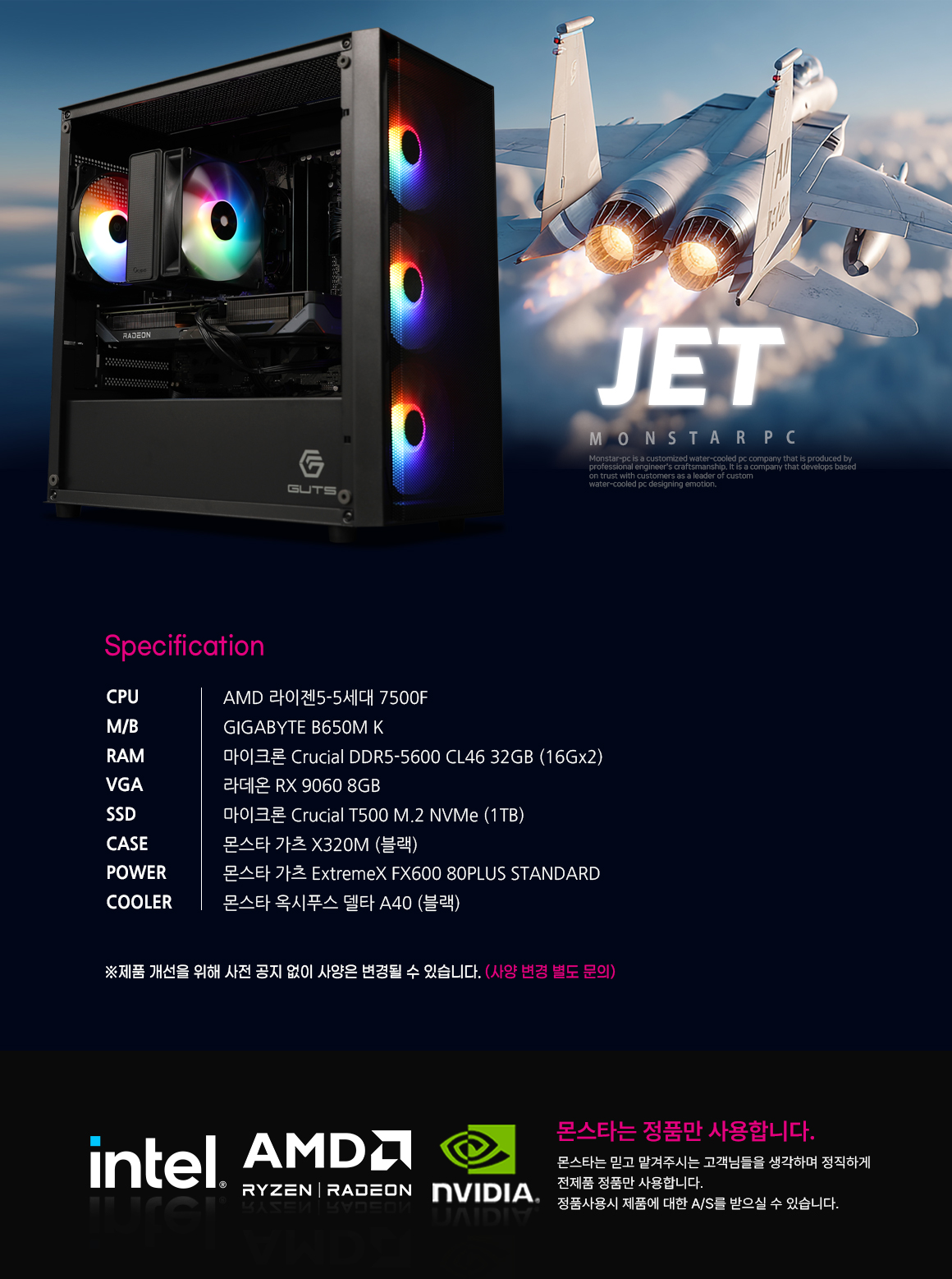 몬스타PC 라이젠5 7500F RX9060 32G 게이밍 컴퓨터 배틀필드6 FHD 완전정복 제트