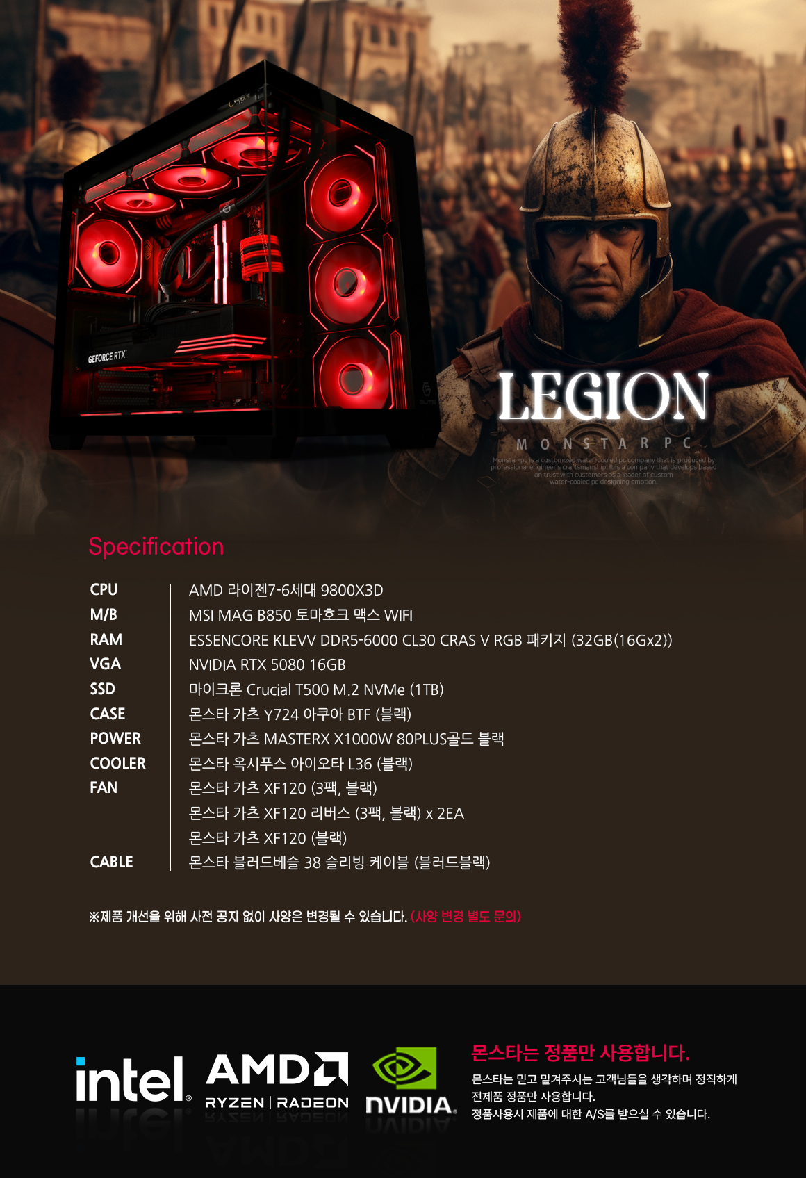 몬스타PC 가츠 AMD 9800X3D RTX 5080 32G 게이밍 컴퓨터 레기온
