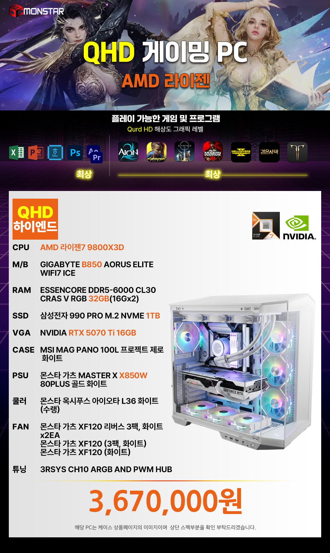 몬스타 PC AMD 9800X3D RTX5070Ti 32GB 아이온2 QHD 하이엔드 게이밍 컴퓨터 3번