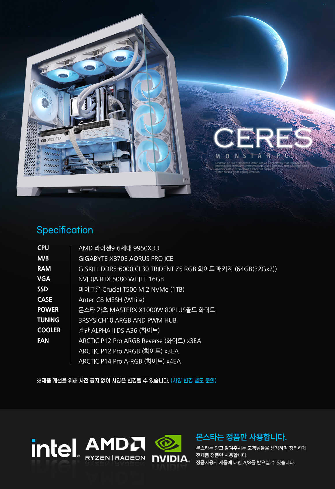 몬스타PC 라이젠9 9950X3D RTX 5080 64G 게이밍 컴퓨터 세레스