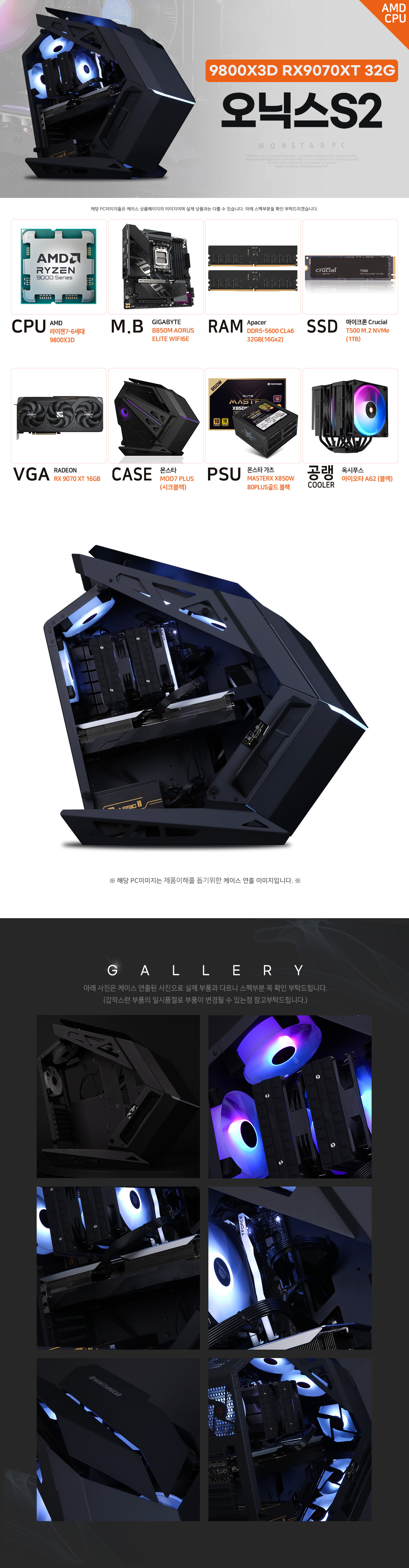 몬스타 PC AMD 라이젠7 9800X3D RX9070XT 32G 아이온2 게이밍 컴퓨터 오닉스S2