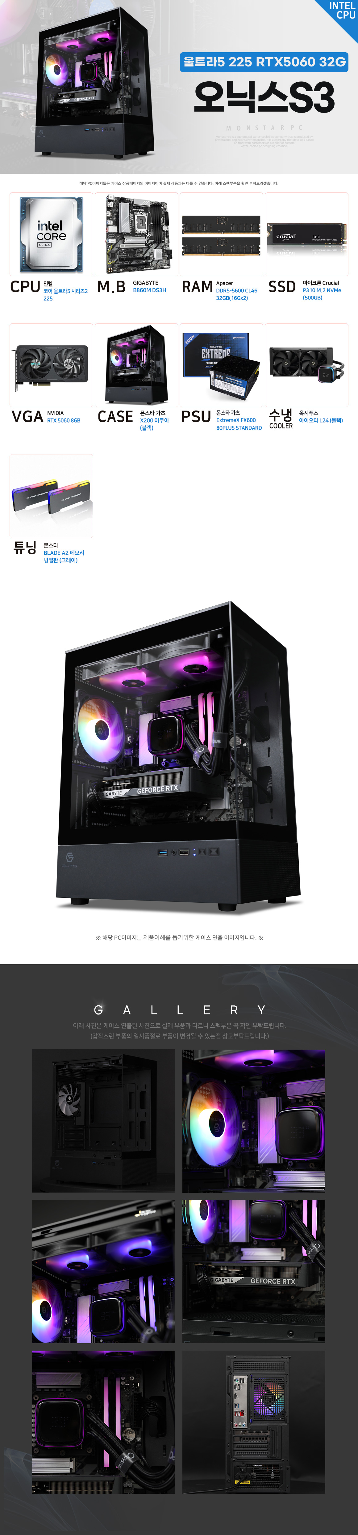 몬스타 PC 인텔 울트라5 225 RTX5060 32G FHD 영상편집 컴퓨터 오닉스S3