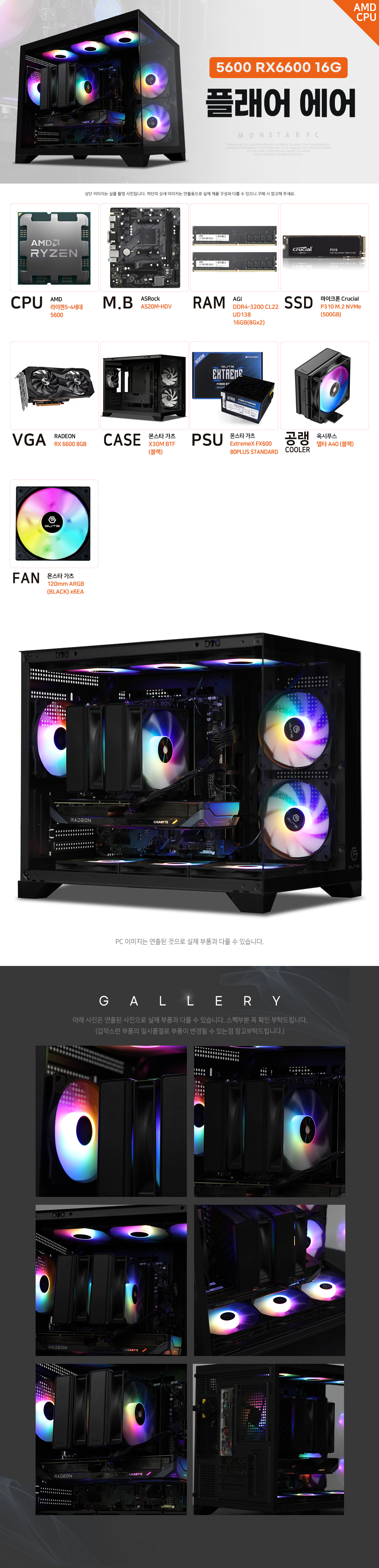 몬스타 PC AMD 라이젠5 5600 RX 6600 16G 가성비 게이밍 컴퓨터 플래어 에어