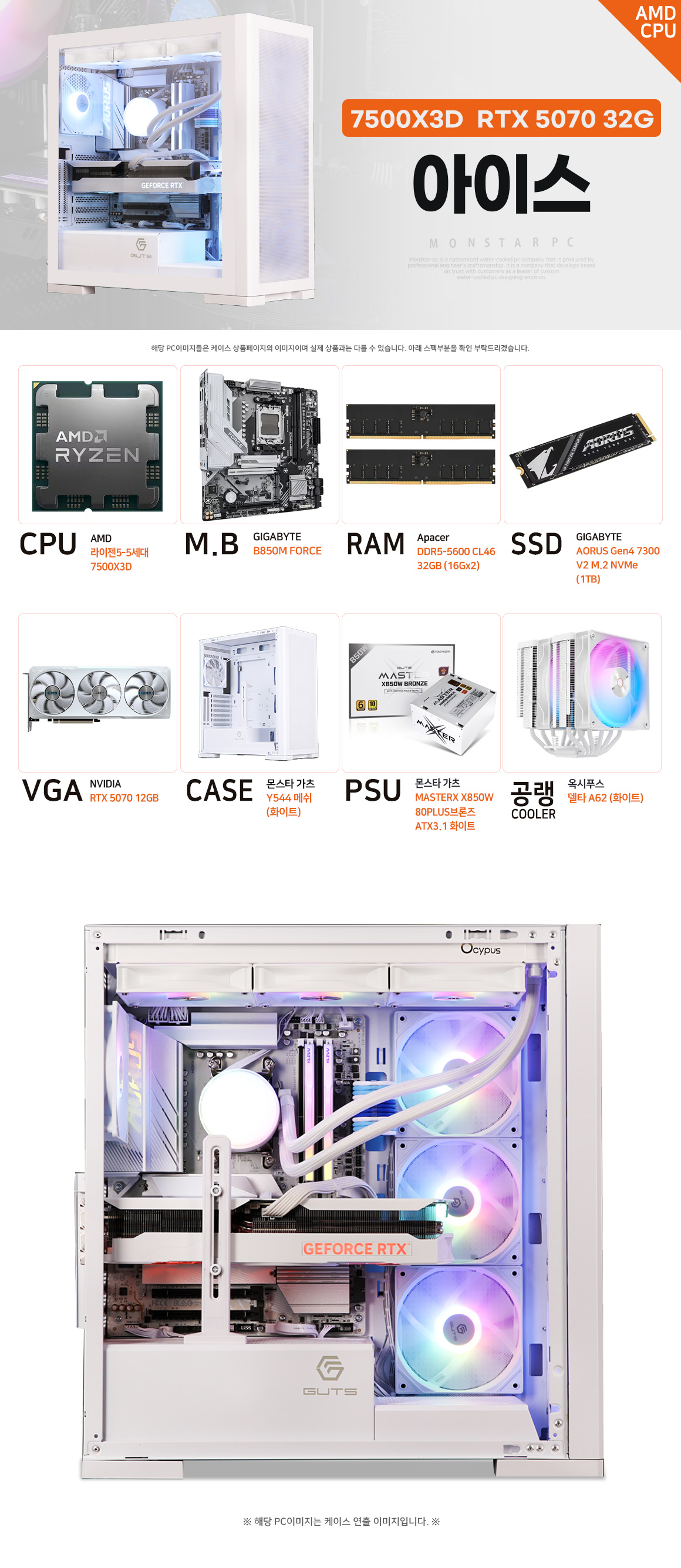 [즉시출고]몬스타 PC AMD 라이젠5 7500X3D RTX 5070 32G 게이밍 컴퓨터 아이스