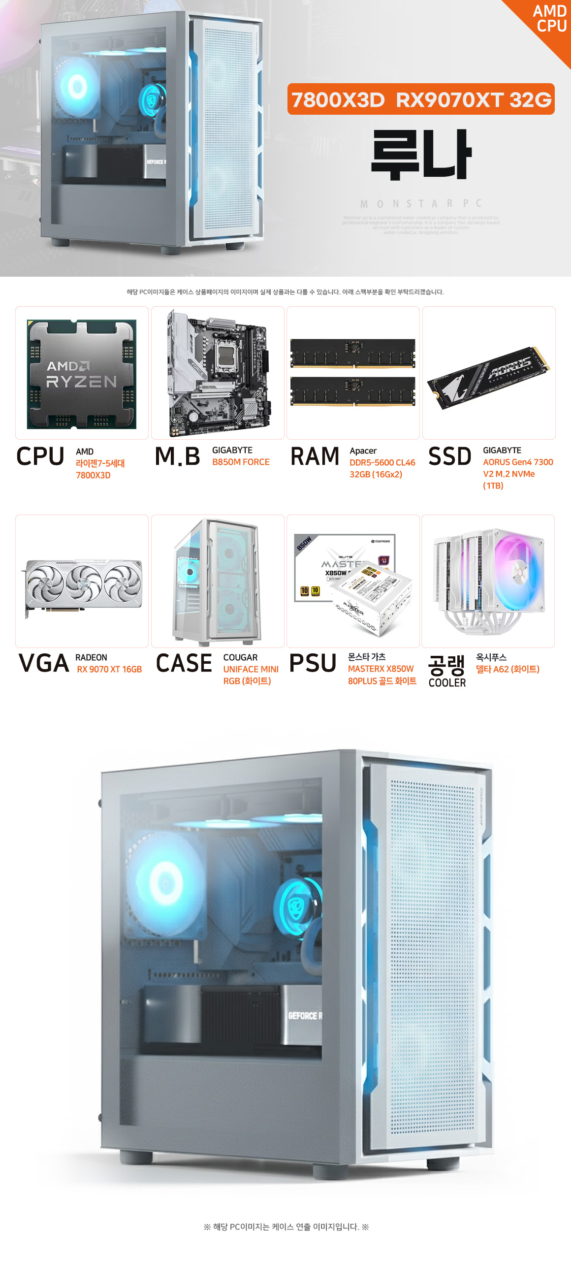 [특가]몬스타 PC AMD 라이젠7 7800X3D RX 9070 XT 32G 게이밍 컴퓨터 루나