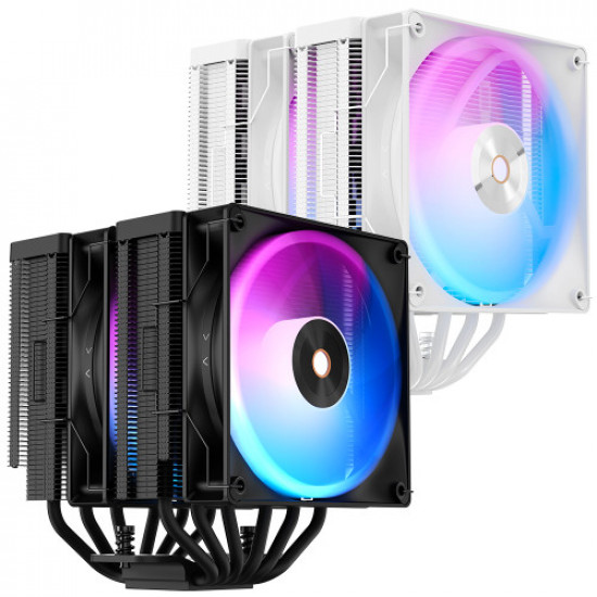 CPU 쿨러 / 공랭 / 듀얼타워형 / 팬 쿨러 / TDP:260W / A/S기간:2년 / [호환/크기] / 인텔 소켓:LGA1851,LGA1700,LGA1200,LGA115x / AMD 소켓:AM5,AM4 / 가로:127mm / 세로:136mm / 높이:156mm / 무게:1.03kg / [쿨링팬] / 팬 크기:120mm / 팬 개수:2개 / 25T / 3-4핀 / 베어링:Hydraulic(유체) / 2000 RPM / 최대 풍량:73 CFM / 풍압(정압):4.3mmH₂O / 최대 팬소음:29dBA / 작동전압:팬 12V,LED 5V / [부가기능] / LED 라이트 / PWM 지원 / RGB