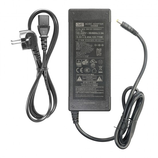 [분류/용도] / 어댑터 / 노트북/모니터 / [입,출력 전압] / 입력전압:AC 100-240V / 출력전압:DC 19.5V / [용량/전력] / 전류값:6.45A / 전력:125W / [주요스펙] / 외경:5.5mm / 내경:2.5mm / DC잭 케이블 길이:110cm / 프리볼트