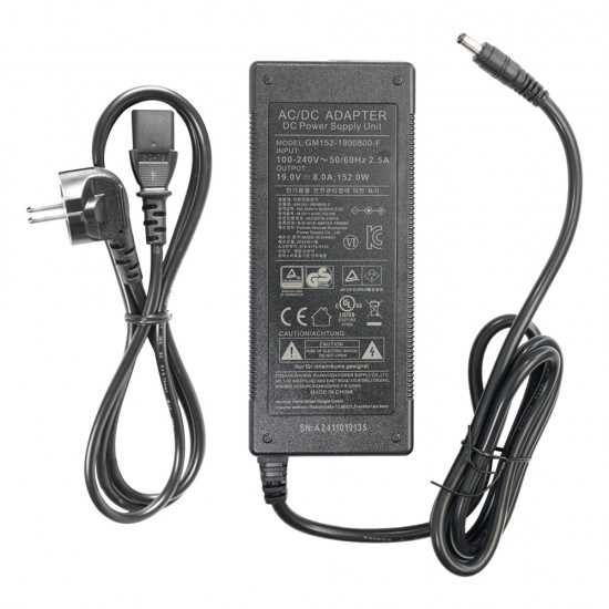 [분류/용도] / 어댑터 / 노트북/모니터 / [입,출력 전압] / 입력전압:AC 100-240V / 출력전압:DC 19V / [용량/전력] / 전류값:8A / 전력:152W / [주요스펙] / 외경:5.5mm / 내경:2.5mm / DC잭 케이블 길이:110cm / 프리볼트 / 전원 LED